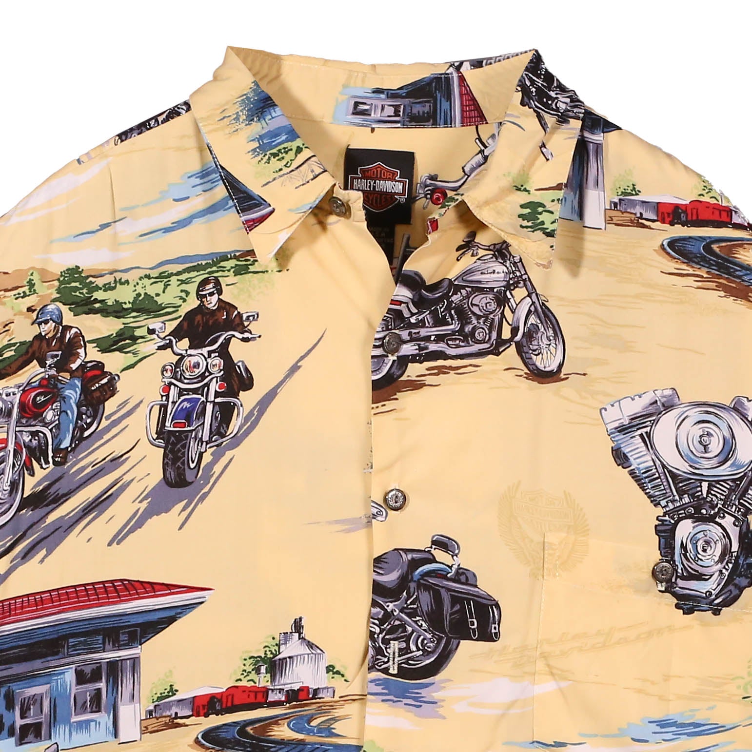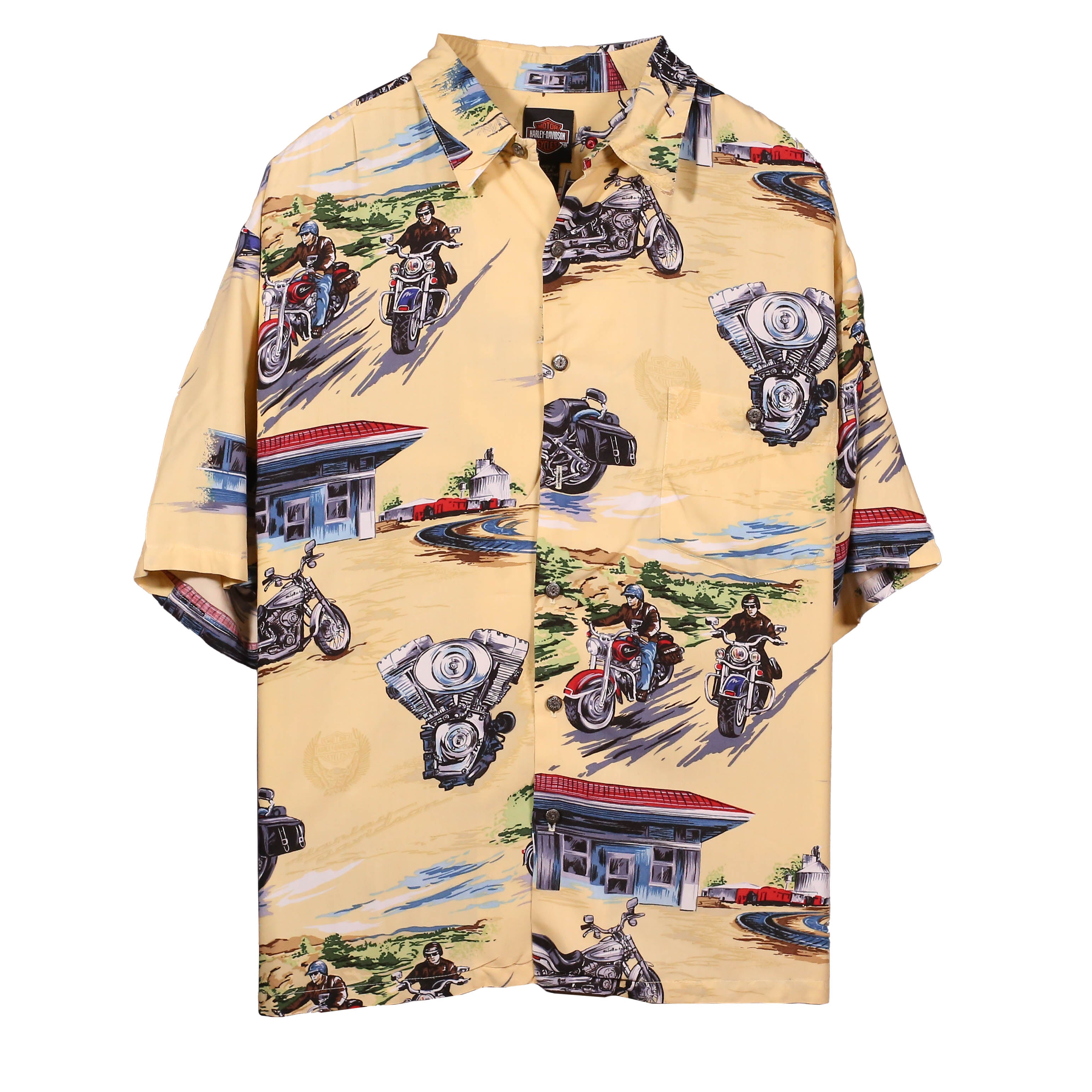 Stand out with this Harley-Davidson Geometric All Over Button Down Shirt in striking beige. The bold all-over geometric pattern makes an unmistakable statement, blending contemporary edge with motorcycle heritage. The vibrant yellow demands attention while the classic button-down silhouette keeps it wearable for any occasion. Built with the durability Harley-Davidson riders expect, this shirt celebrates individuality and fearless style. Perfect for those who refuse to blend in and wear their attitude on their sleeve.