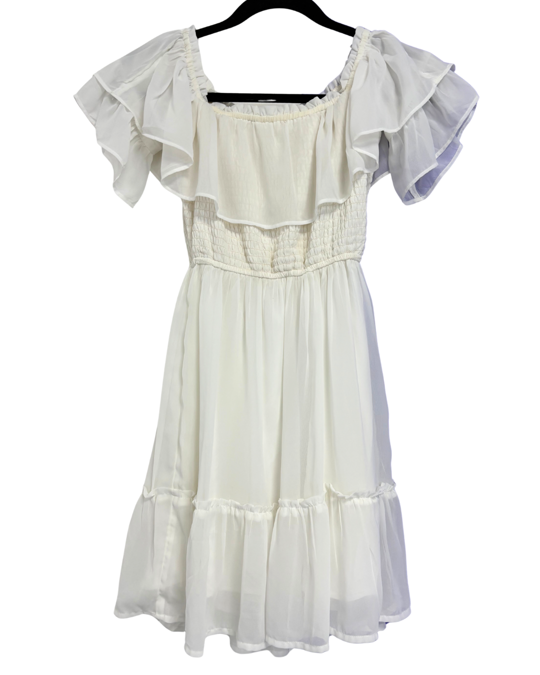 Hollister White Ruffle Smocked Off-The-Shoulder Mini Dress