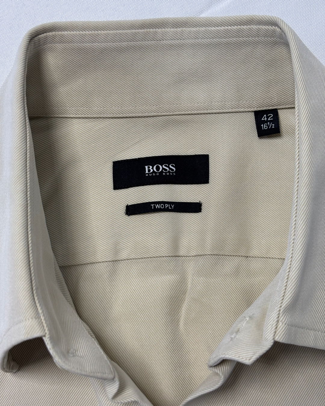 Product form Hugo Boss Two Ply Sand Beige Dress Shirt Measurements (inches) Pit to Pit: 23Length: 28.5 Brand Size: 42 Dhs50.00 Quantity Add to cart Washed & Ready to WearFree shipping on all orders above 100 AEDNext day delivery