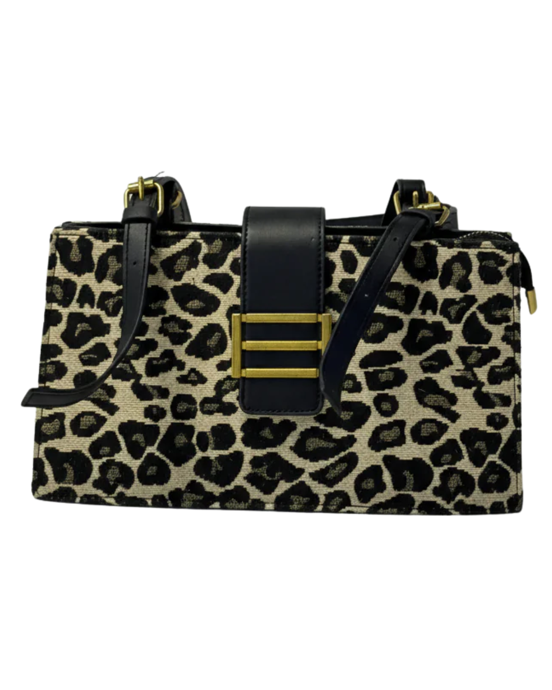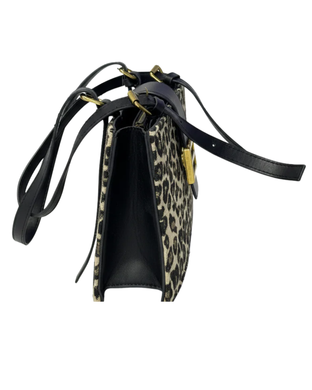 Jean Paris Leopard Print Rectangular Satchel Bag