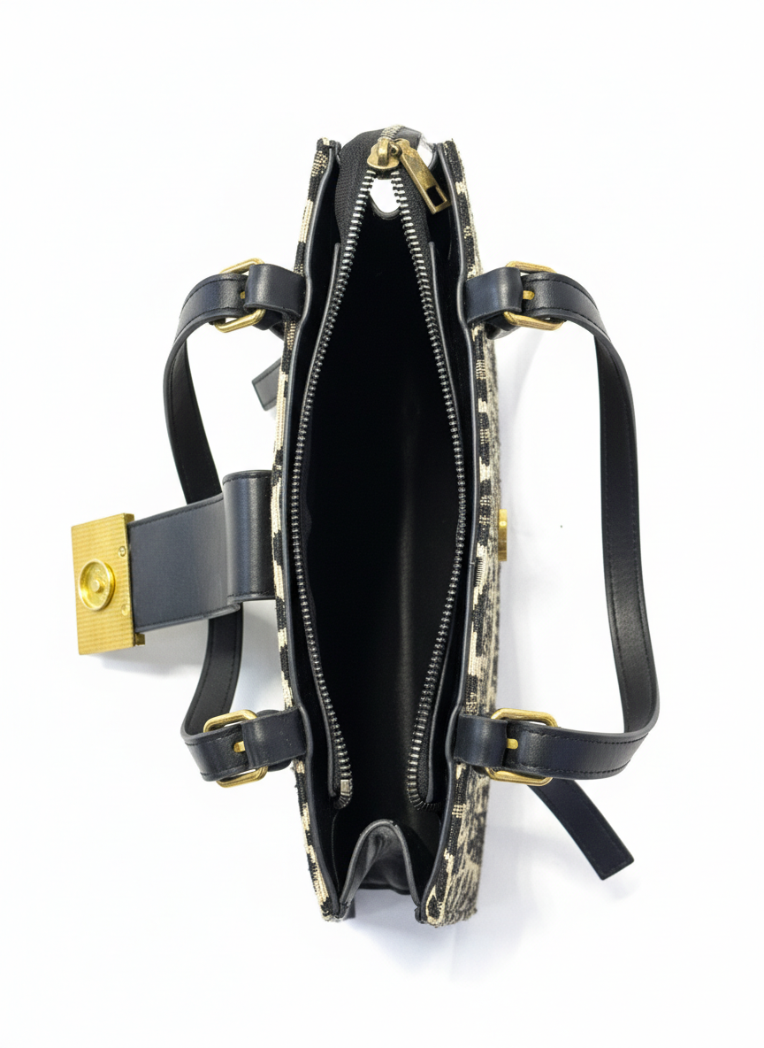 Make a bold statement with this structured satchel featuring a striking animal motif. The woven jacquard texture adds a touch... Read more