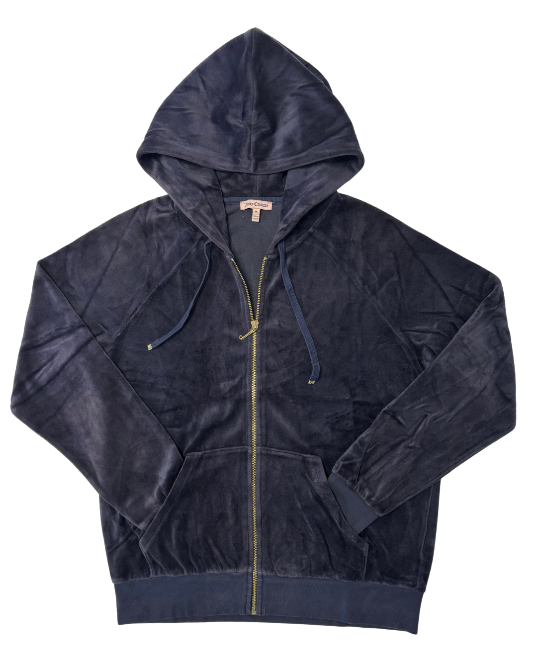 Product form Juicy Couture Navy Blue Velour Gold Zip Detail Zip-Up Hoodie - L Measurements (inches) Pit to Pit: 21Length: 25Brand Size: M Dhs70.00 Quantity Add to cart Washed & Ready to WearFree shipping on all orders above 100 AEDNext day delivery