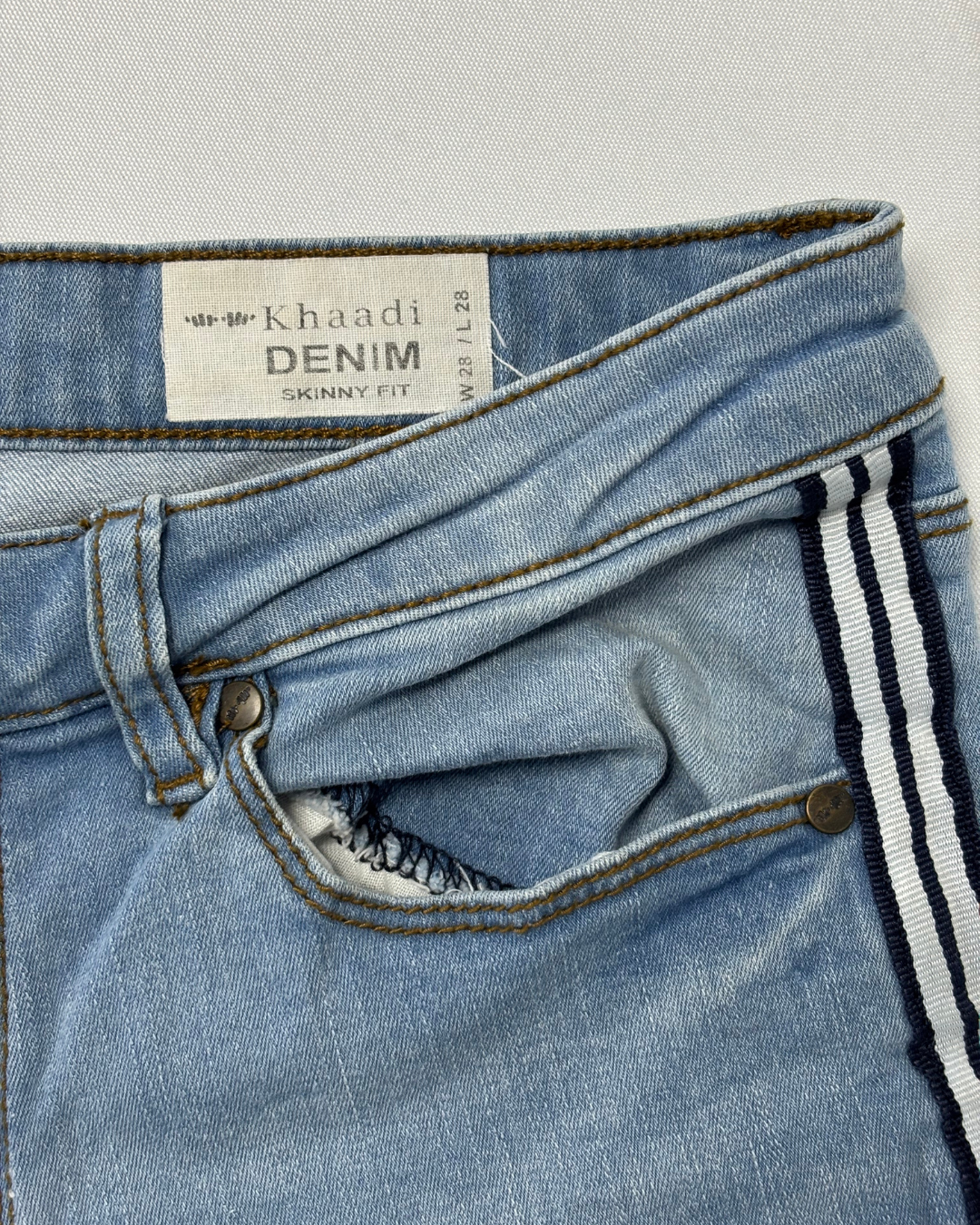 Product form Khaadi Denim Light Wash Skinny Fit Jeans with Side Stripe - M | Waist: 30" Measurements:Waist: 30Outseam: 34.5 Brand Size: 28 Dhs45.00 Quantity Add to cart Washed & Ready to WearFree shipping on all orders above 100 AEDNext day delivery