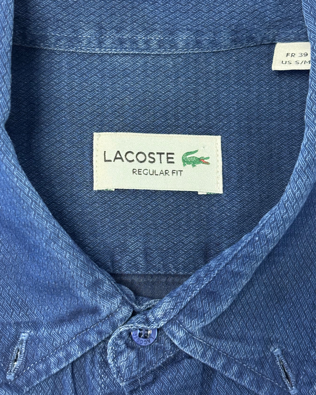 Product form Lacoste Blue Textured Classic Crocodile Logo Regular Fit Shirt Measurements (inches) Pit to Pit: 20.7Length: 30 Brand Size: S Dhs65.00 Quantity Add to cart Washed & Ready to WearFree shipping on all orders above 100 AEDNext day delivery