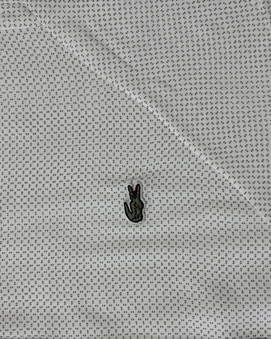 Product form Lacoste Micro-Printed White Button-Up Dress Shirt - S Measurements (inches) Pit to Pit: 19Length: 24.5 Brand Size: 36 Dhs60.00 Quantity Add to cart Washed & Ready to WearFree shipping on all orders above 100 AEDNext day delivery