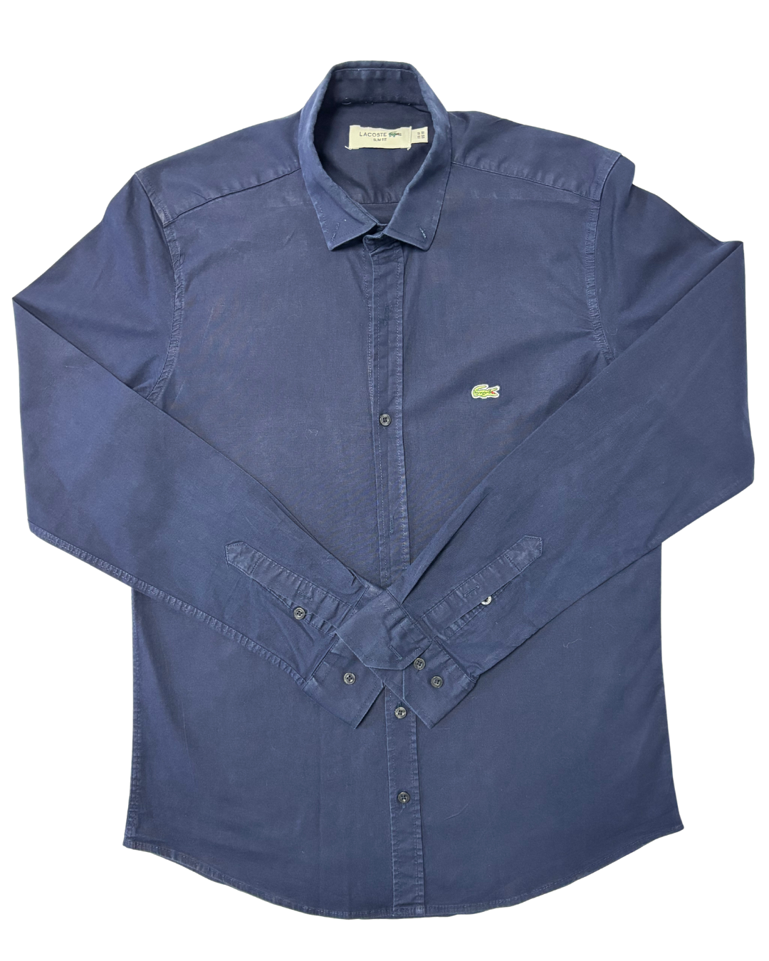 Product form Lacoste Slim Fit Navy Blue Long-Sleeve Button-Up Shirt Measurements (inches) Pit to Pit: 19Length: 26.5 Brand Size: M Dhs65.00 Quantity Add to cart Washed & Ready to WearFree shipping on all orders above 100 AEDNext day delivery