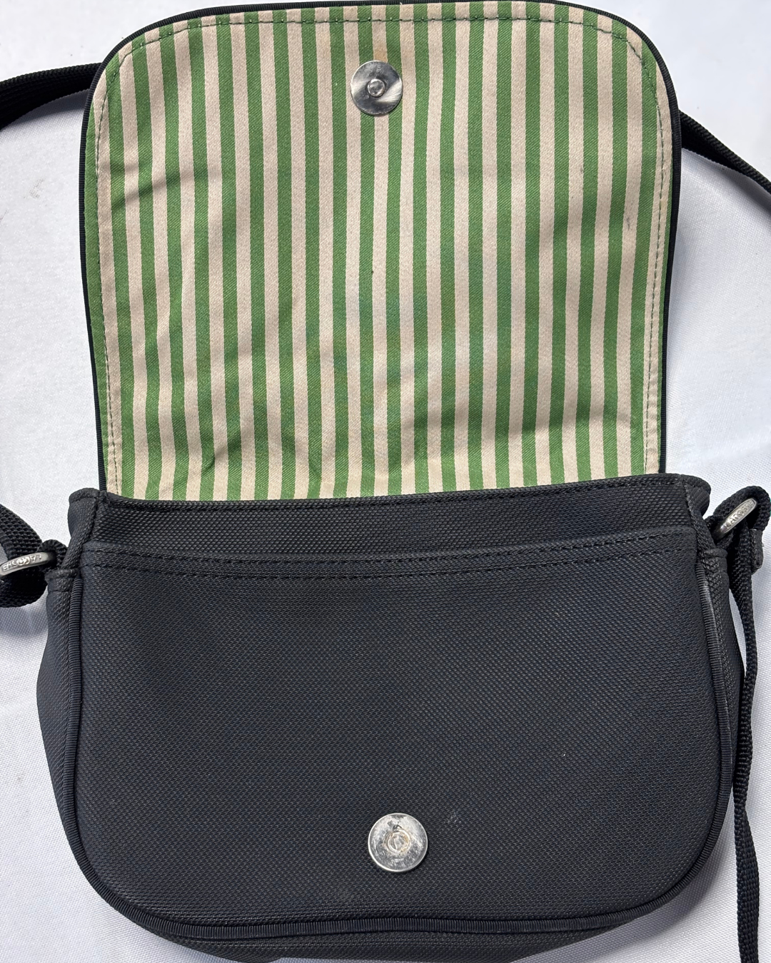 Lacoste Small Black Nylon Green Stripe Lining Flap Crossbody Bag