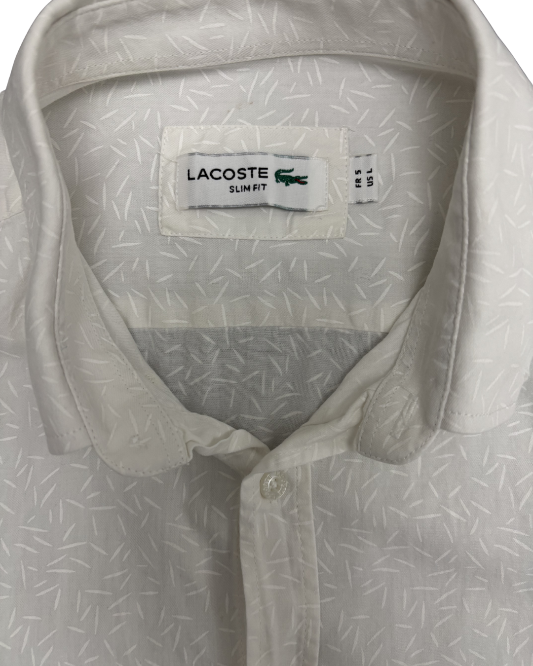 Product form Lacoste White Patterned Slim Fit Long Sleeve Shirt - XS Measurements:Pit To Pit: 18Length: 28 Brand Size: L Dhs60.00 Quantity Add to cart Washed & Ready to WearFree shipping on all orders above 100 AEDNext day delivery