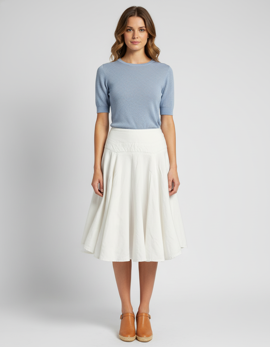Larry Levine Flowy Ivory High-Waist Linen Blend Skirt