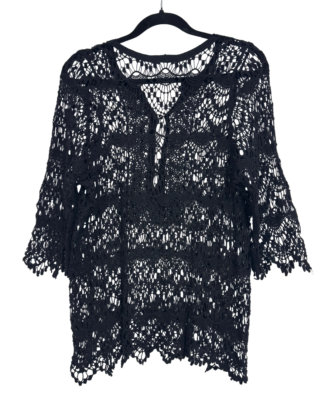 Product form Last Girl Black Crochet Knit Button-Up Cover-Up Top - M Measurements (inches) Pit to Pit: 20.5Length: 28.3Brand Size: NA Dhs40.00 Quantity Add to cart Washed & Ready to WearFree shipping on all orders above 100 AEDNext day delivery
