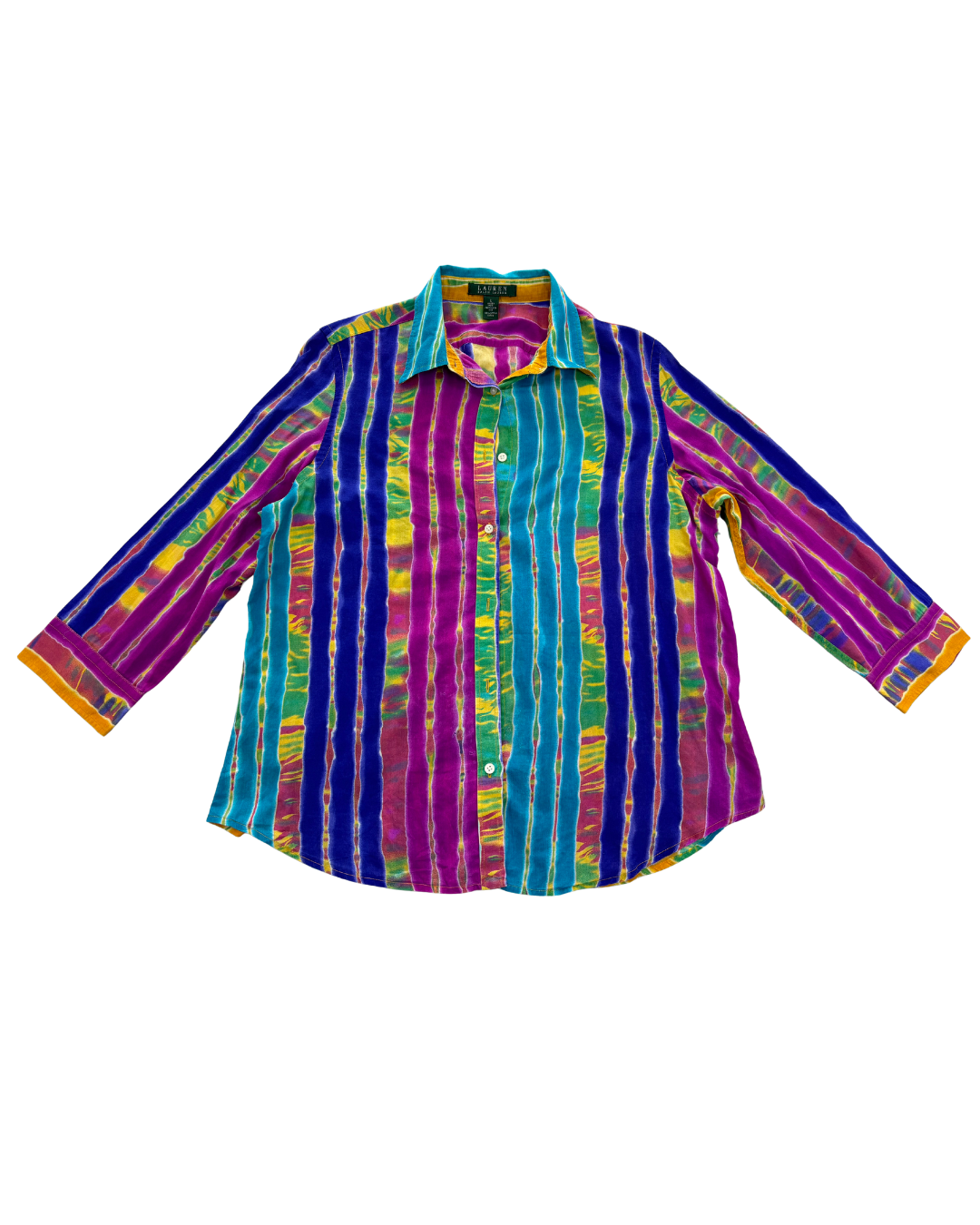 Lauren by Ralph Lauren Tie-Dye Stripe Festival Shirt - L