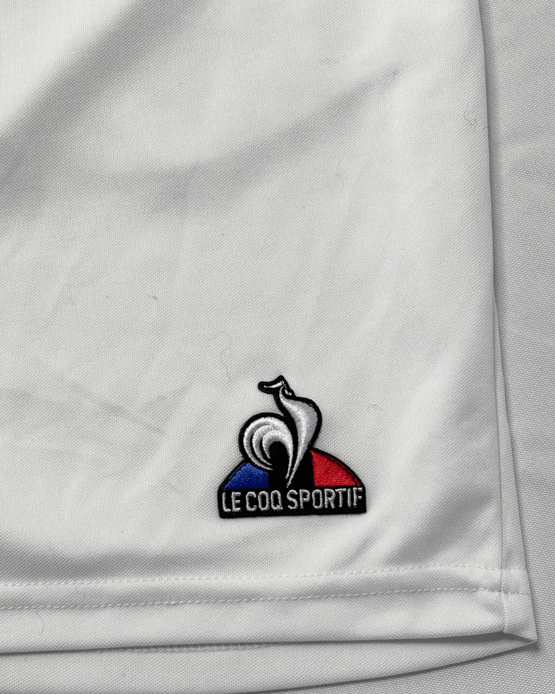 Step up your activewear game with these iconic Le Coq Sportif training shorts. Crafted in crisp white, they feature a distinctive red, white, and blue elasticated waistband, a nod to the brand's French heritage. The classic Le Coq Sportif logo is subtly placed, adding a touch of sporty sophistication. Designed for comfort and performance, these versatile unisex shorts are perfect for workouts, casual wear, or leisure, offering a clean and athletic look. This unique, one-of-one item is in excellent pre-loved condition, ready for its next adventure.
