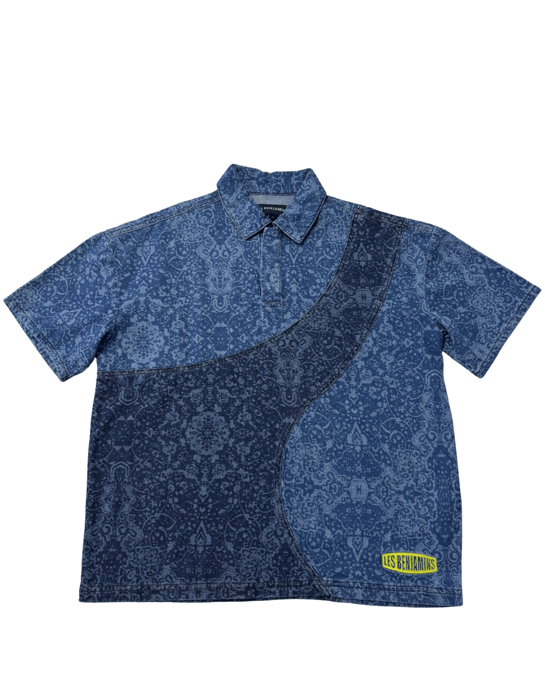 Les Benjamins Patchwork Indigo Blue Denim Polo Shirt