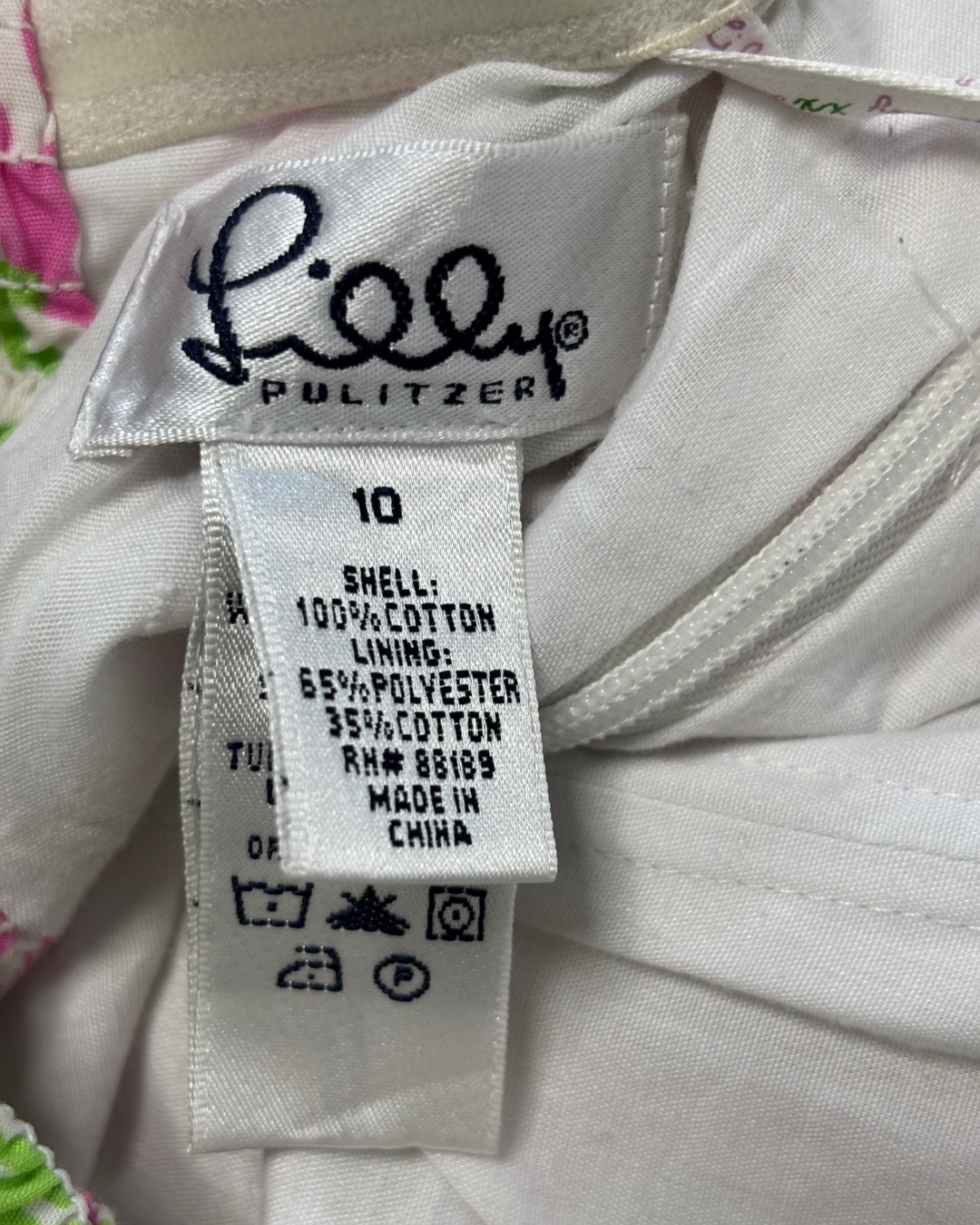 Embrace tropical chic with this authentic Lilly Pulitzer strapless top in a vibrant pink and lime green print. This iconic...