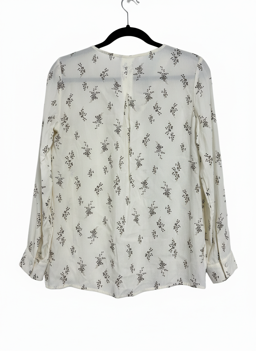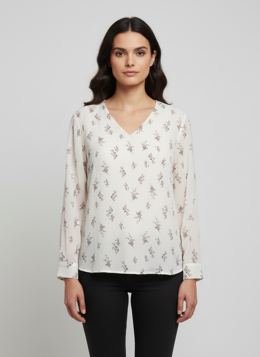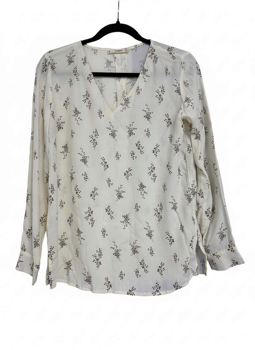Mango Cream Floral Print V-Neck Viscose Blouse