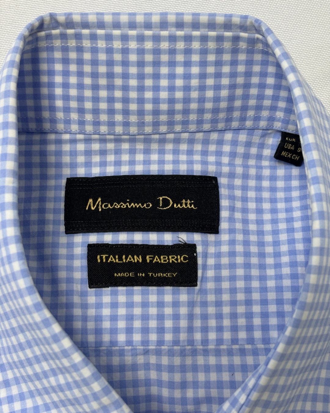 Product form Massimo Dutti Blue & White Micro Gingham Italian Fabric Shirt - XXL Measurements (inches) Pit to Pit: 28.2Length: 20 Brand Size: S Dhs50.00 Quantity Add to cart Washed & Ready to WearFree shipping on all orders above 100 AEDNext day delivery