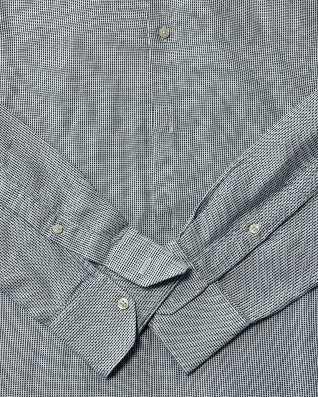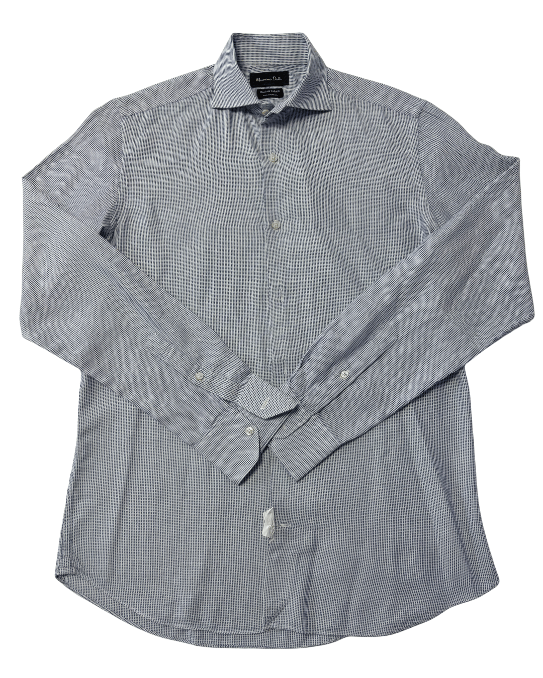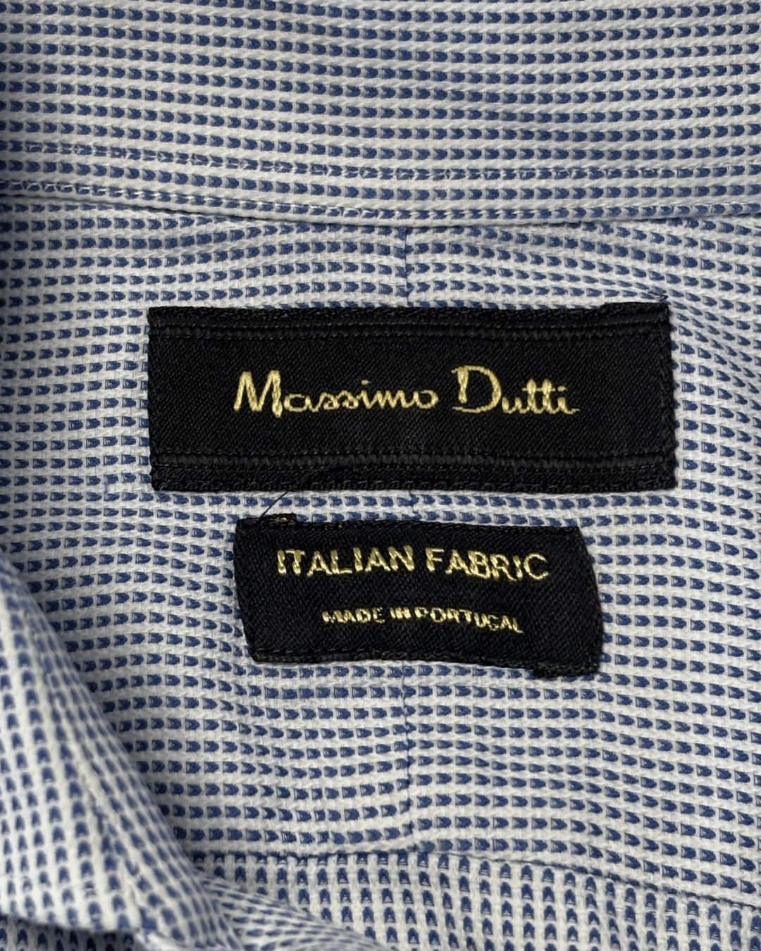Massimo Dutti Blue White Micro-Pattern Italian Fabric Long Sleeve Shirt