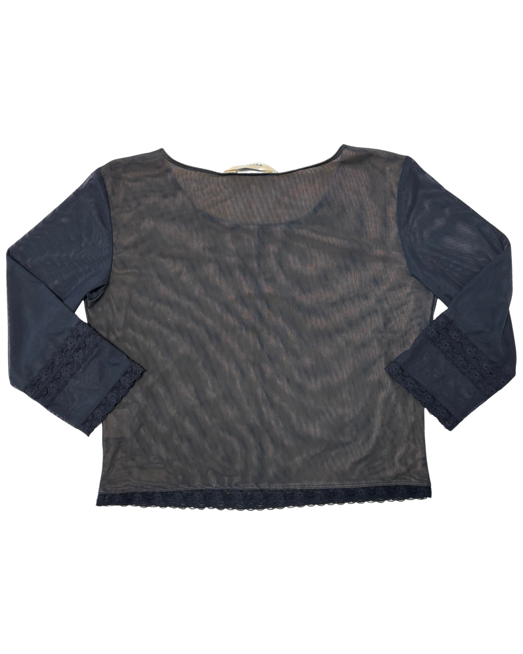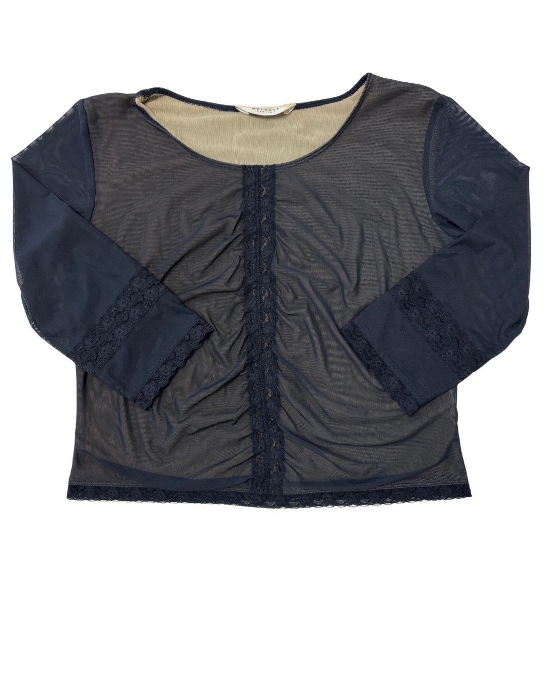 Melrose Petites Charcoal Mesh Ruched Lace Trim & Flared Sleeves Y2K Top