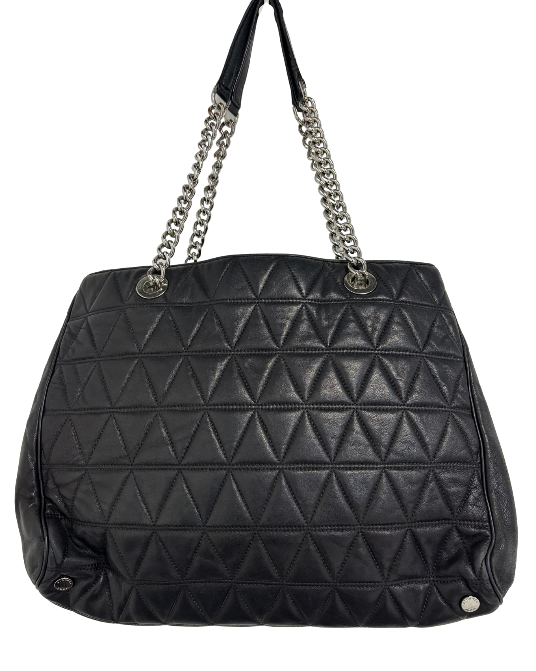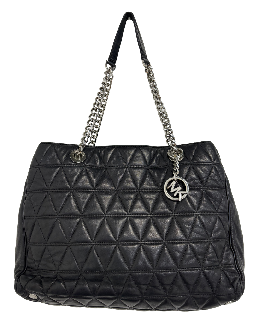Michael Kors Black Quilted Leather Silver Chain Shoulder Straps Tote Bag