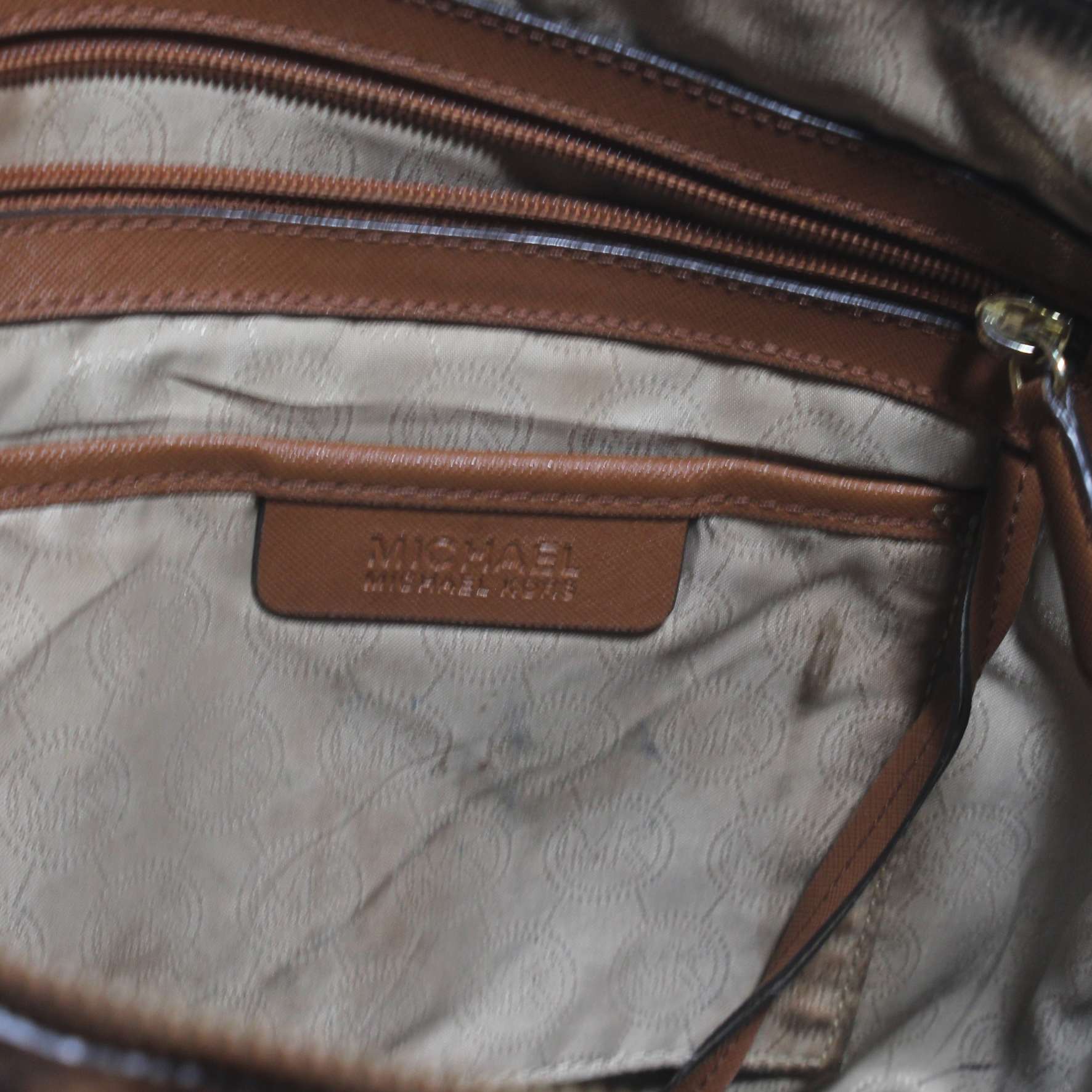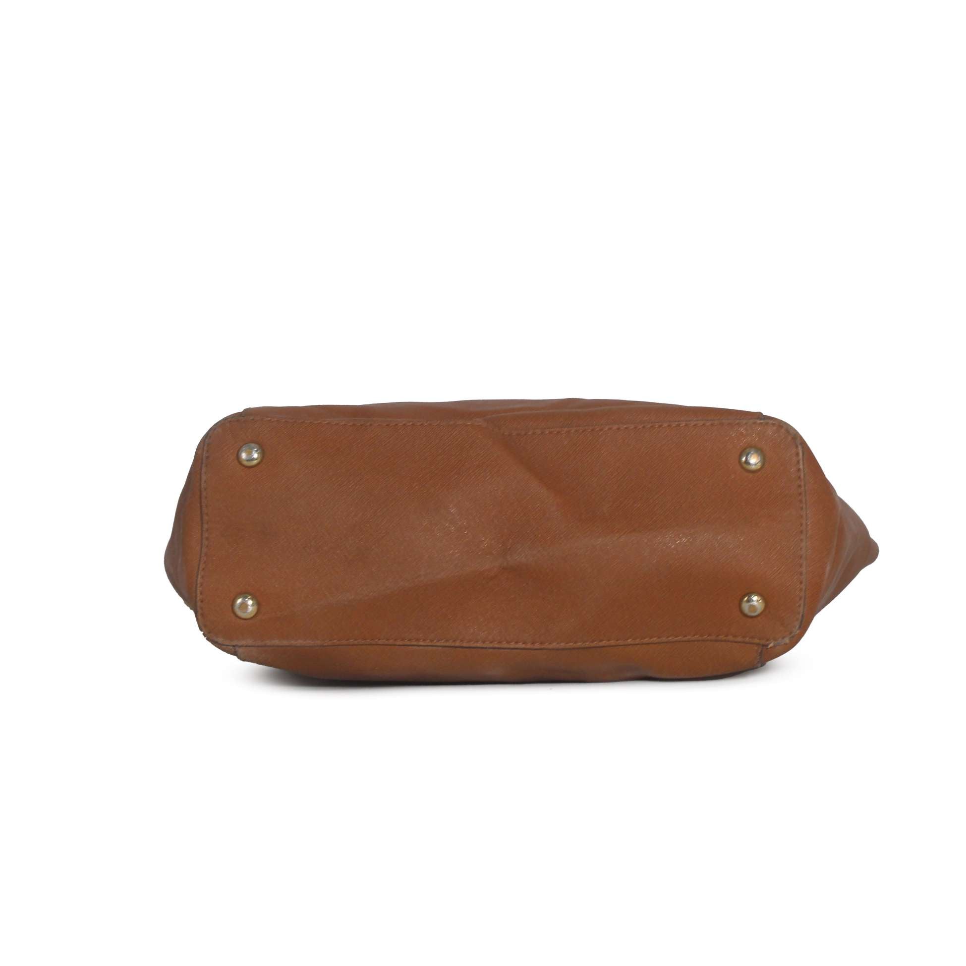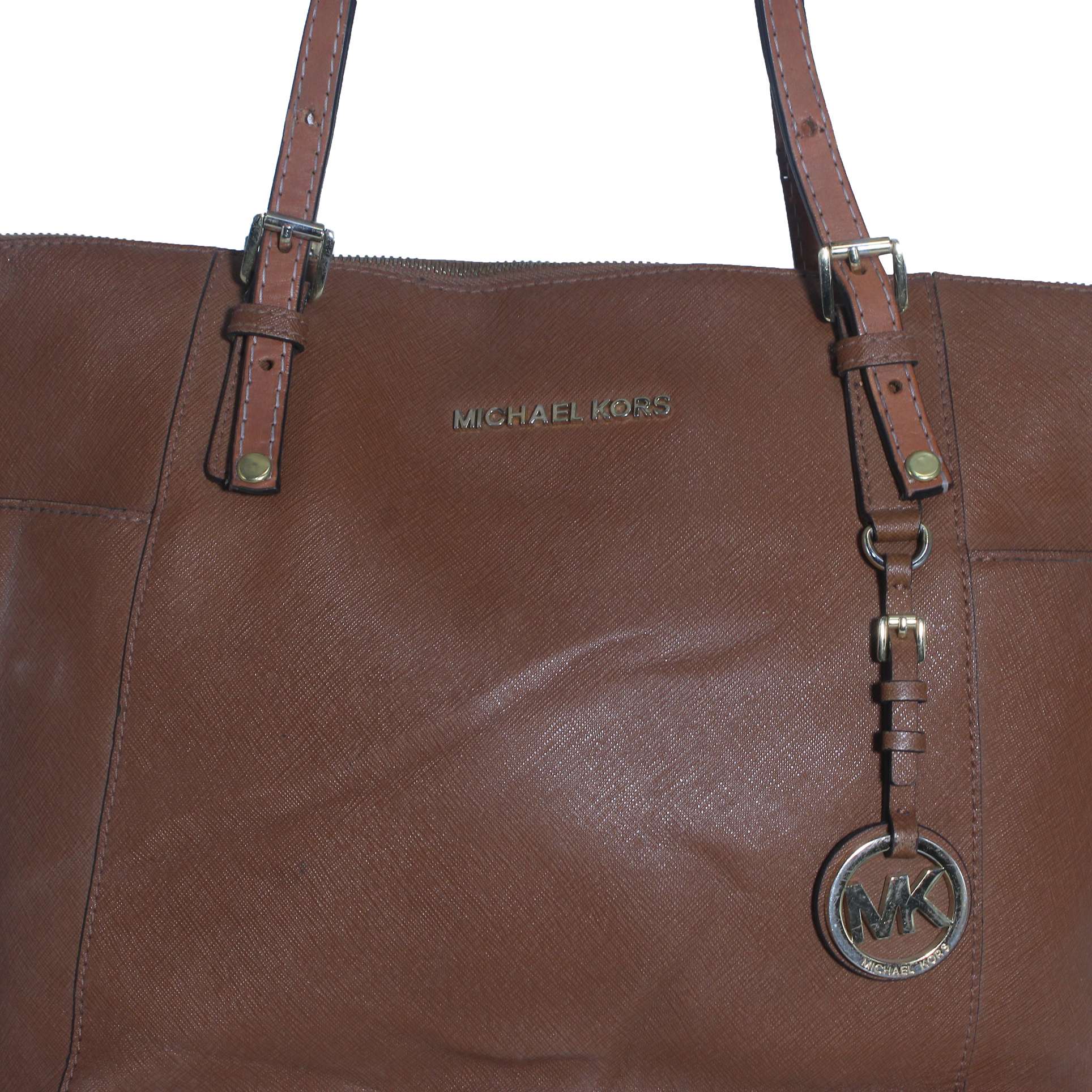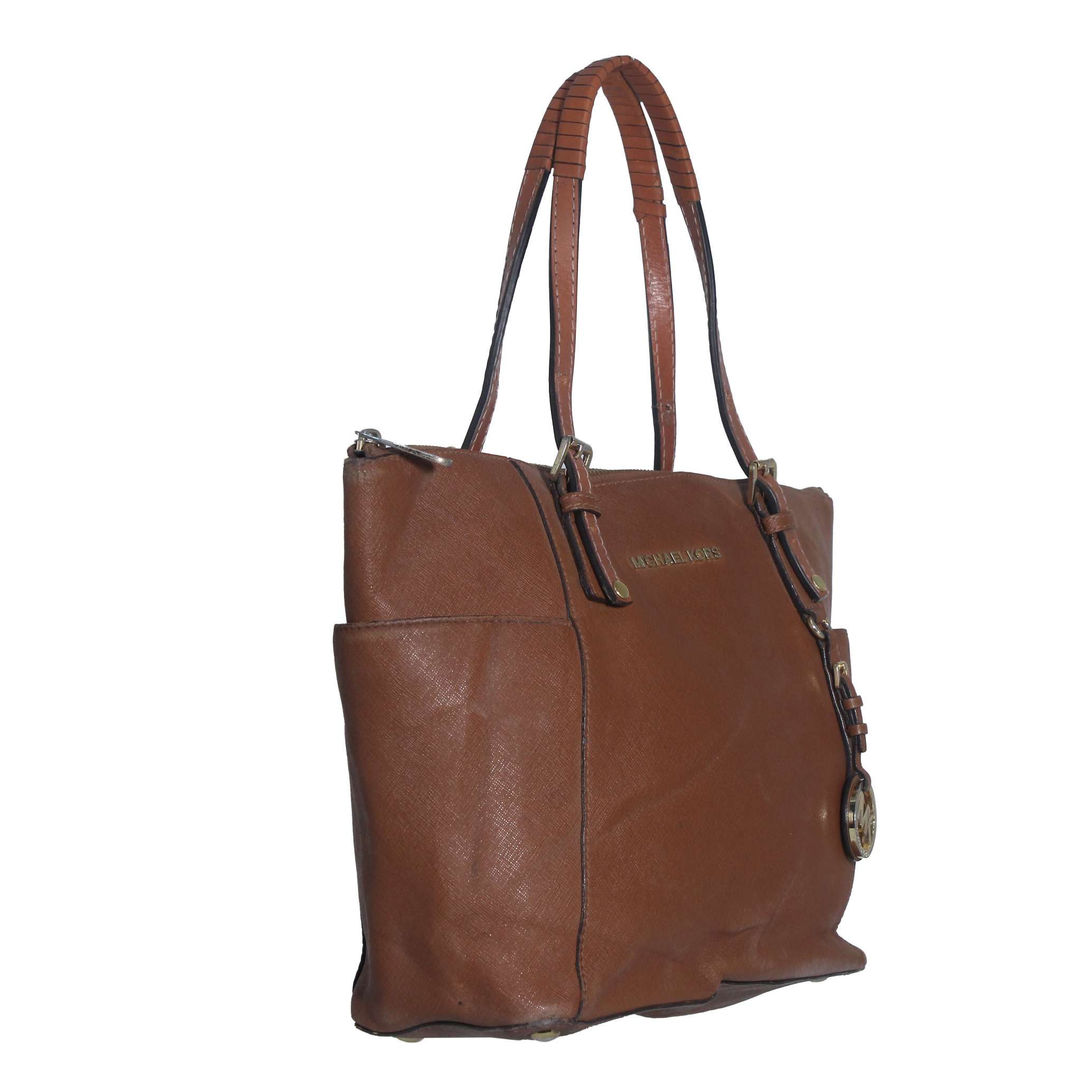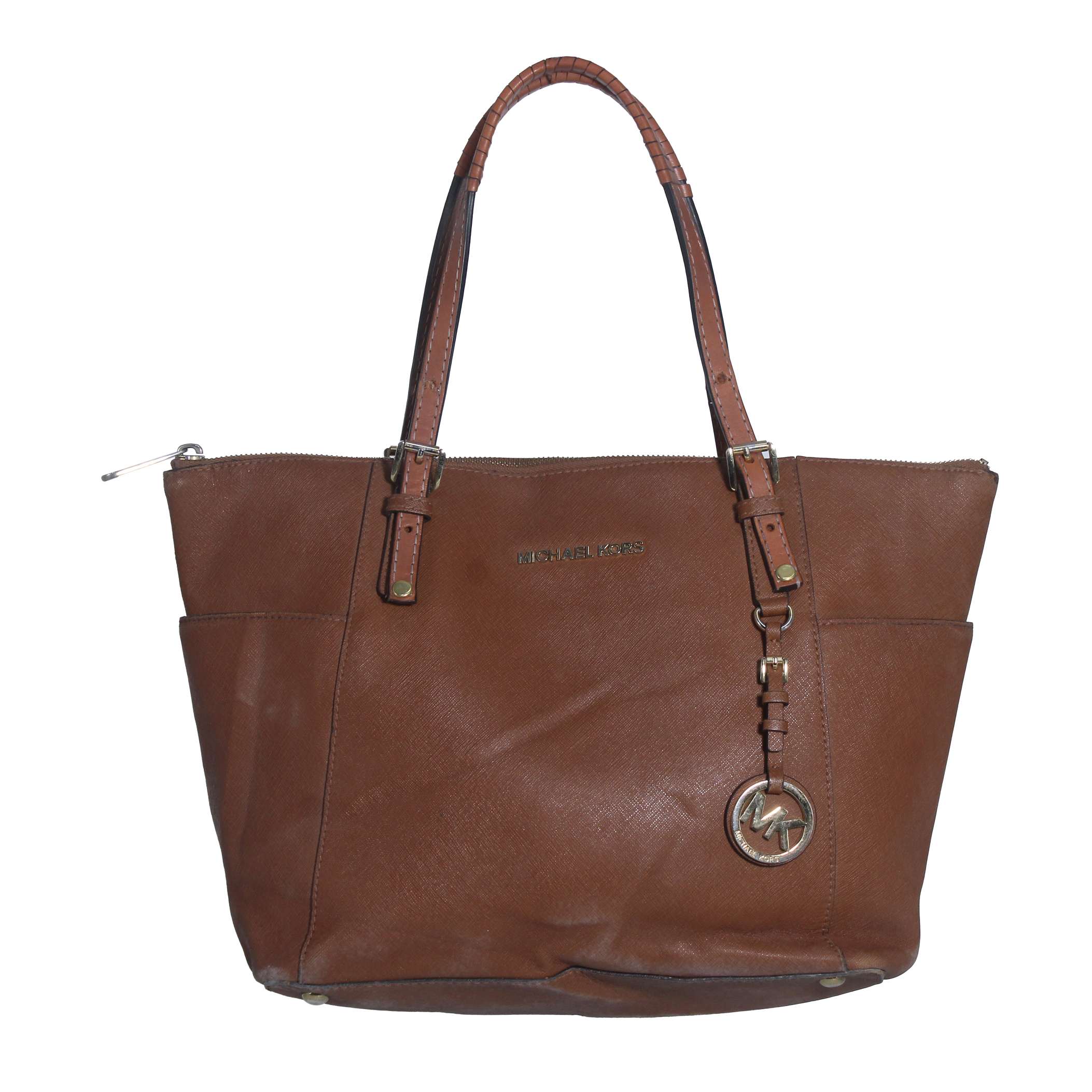 Michael Kors Jet Set Brown Crossgrain Leather Pockets Zipper Tote Shoulder Bag
