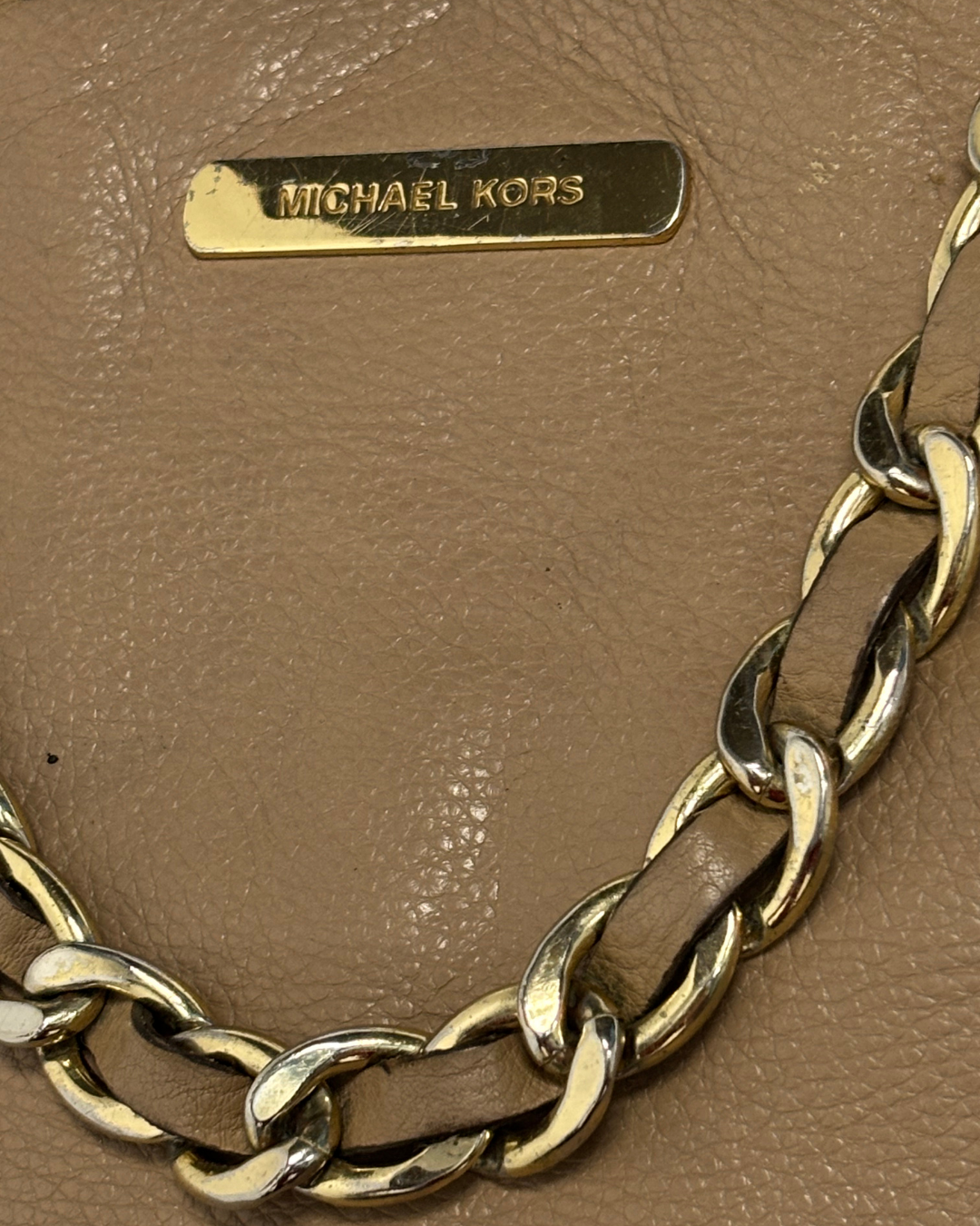 Michael Kors Taupe Leather Gold Chain Detail & Triple Compartment Tote Bag