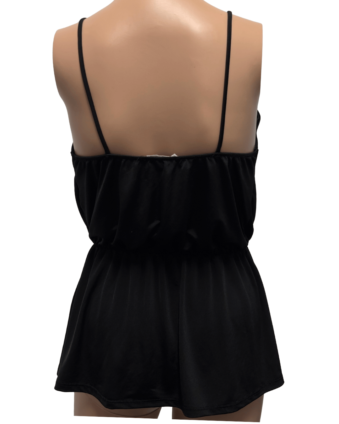 Keep it effortlessly chic with this Mikey & Joey black romper featuring a wrap-style V-neckline and adjustable spaghetti straps. Designed... Read more