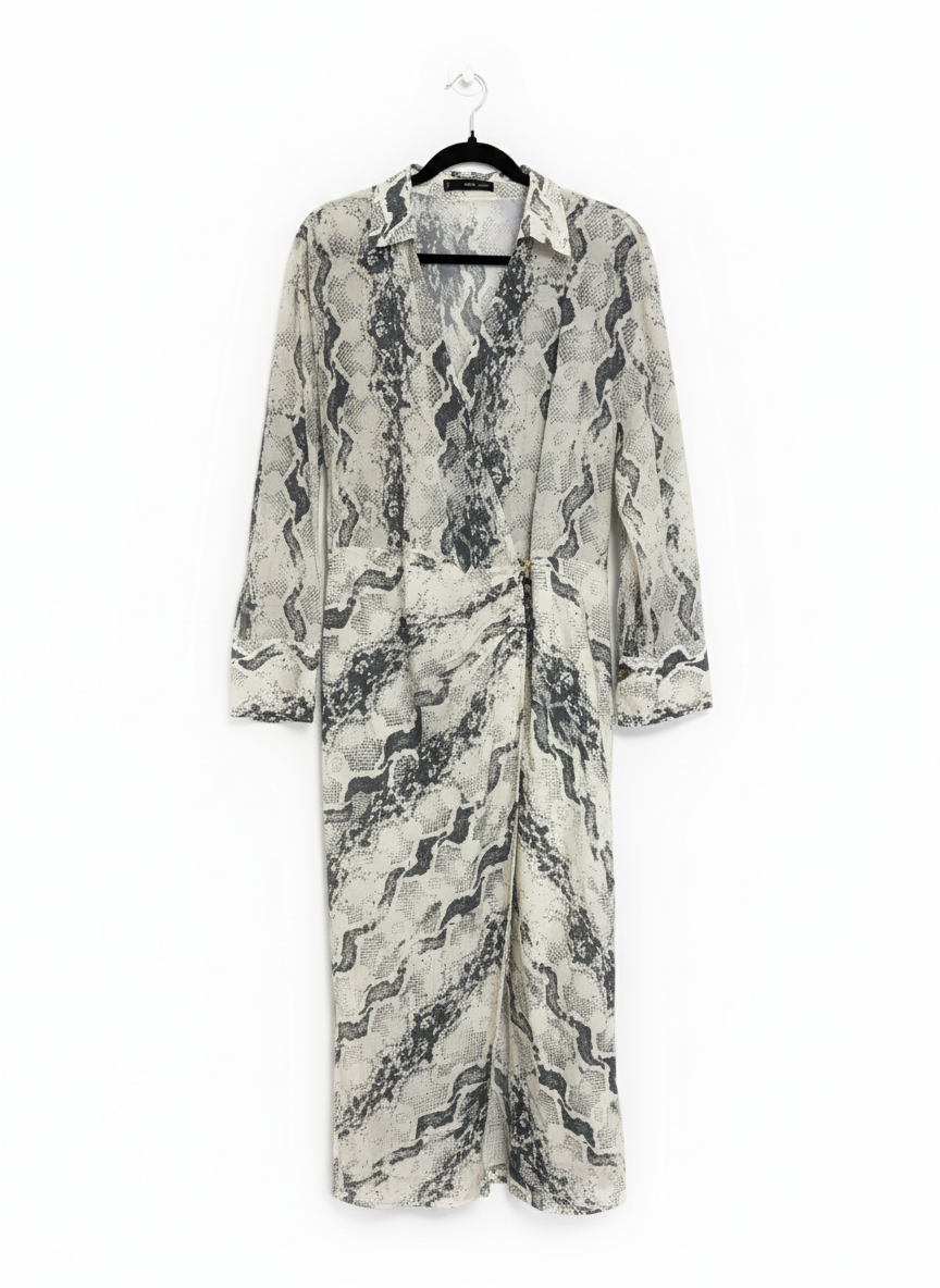 MNG Snakeskin Print Wrap Midi Dress