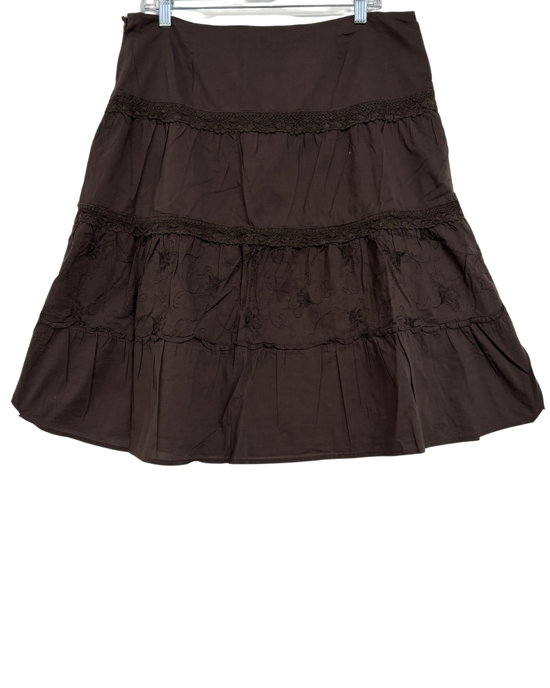Mossimo Y2K Brown Tiered Cotton Lace Trim & Floral Embroidery Skirt