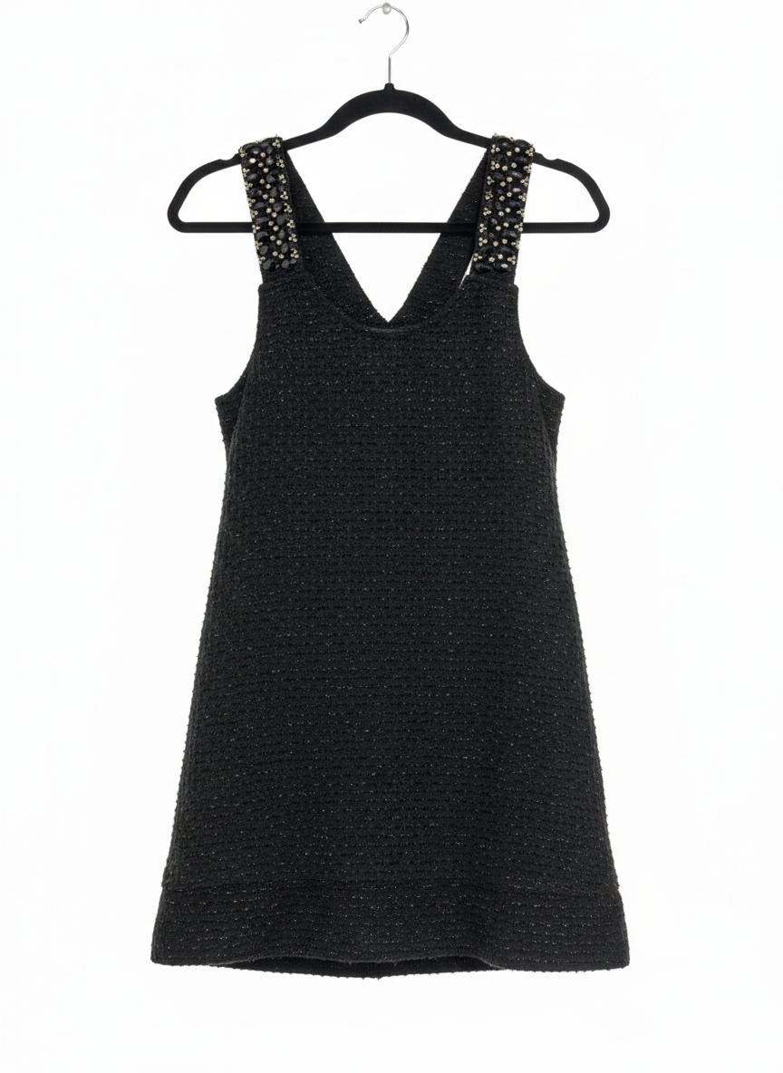 n° 99 Black Embellished Tweed Shimmer Mini Dress