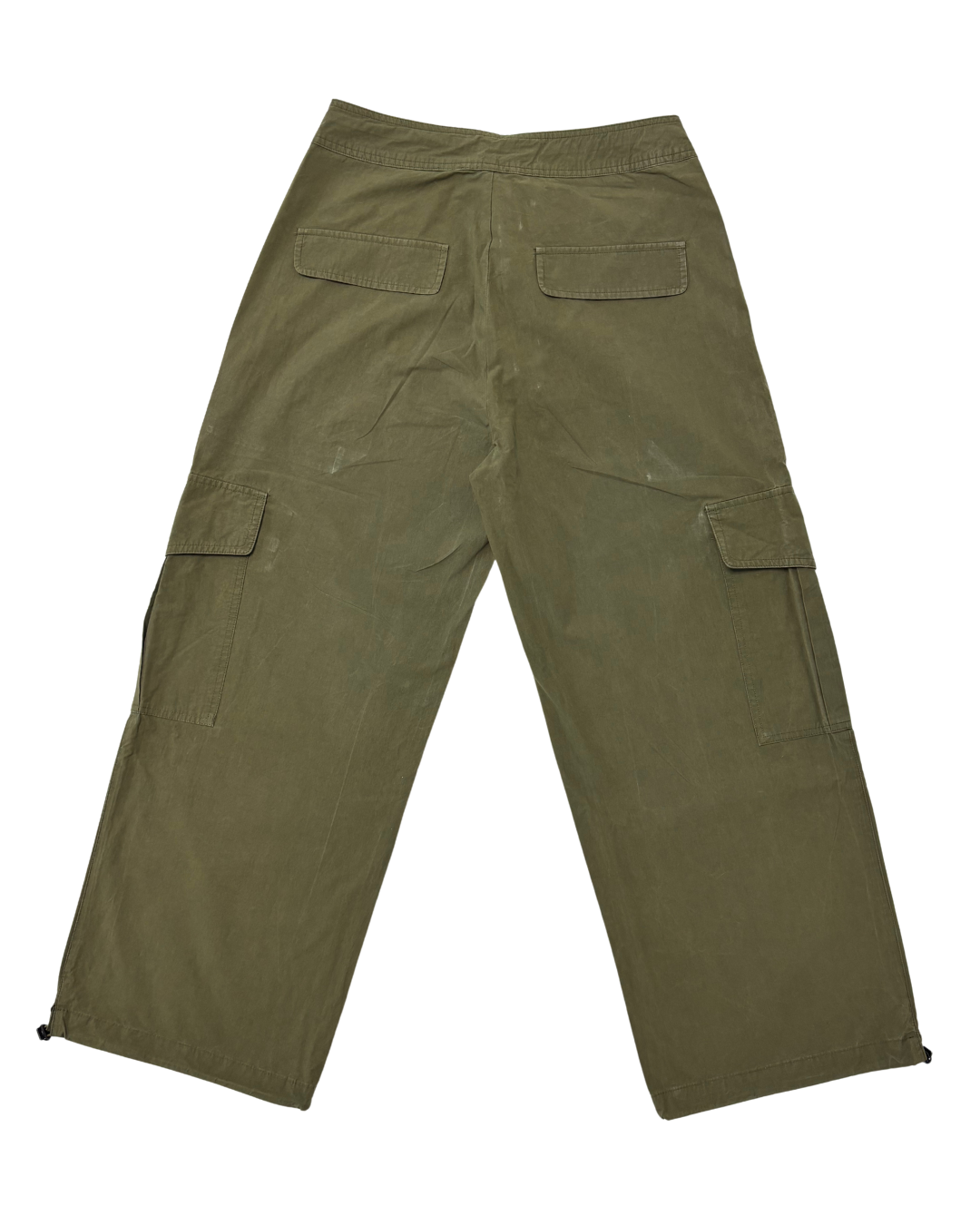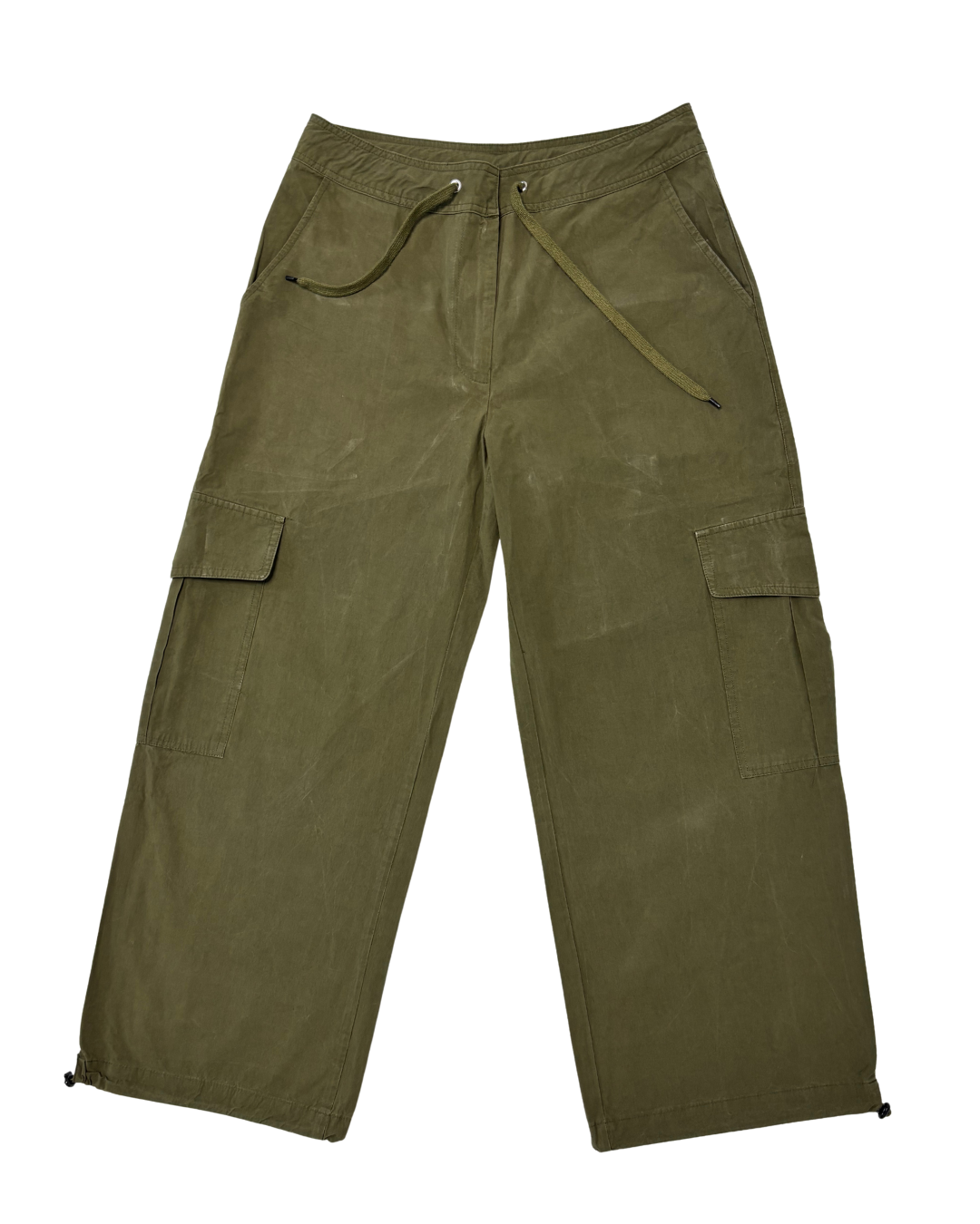 Neo Noir Olive Green Wide-Leg Cargo Pants with Utility Pockets - L | Waist: 32"