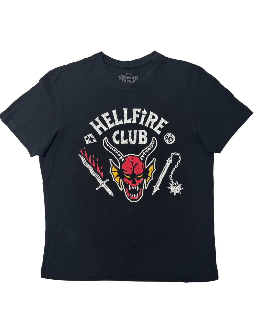 Product form Netflix Stranger Things Hellfire Club Black Graphic T-Shirt Measurements (inches) Pit to Pit: 22.2Length: 27.6 Brand Size: XL Dhs40.00 Quantity Add to cart Washed & Ready to WearFree shipping on all orders above 100 AEDNext day delivery