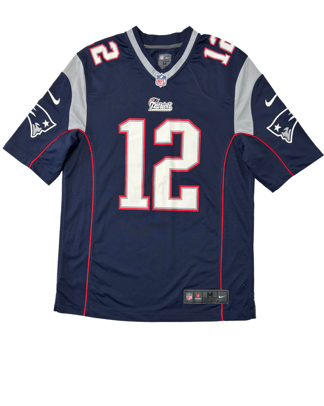 Product form NFL New England Patriots Tom Brady #12 Nike On Field Jersey Measurements (inches) Pit to Pit 21.5Length 30.5 Brand Size: M Dhs100.00 Quantity Add to cart Washed & Ready to WearFree shipping on all orders above 100 AEDNext day delivery