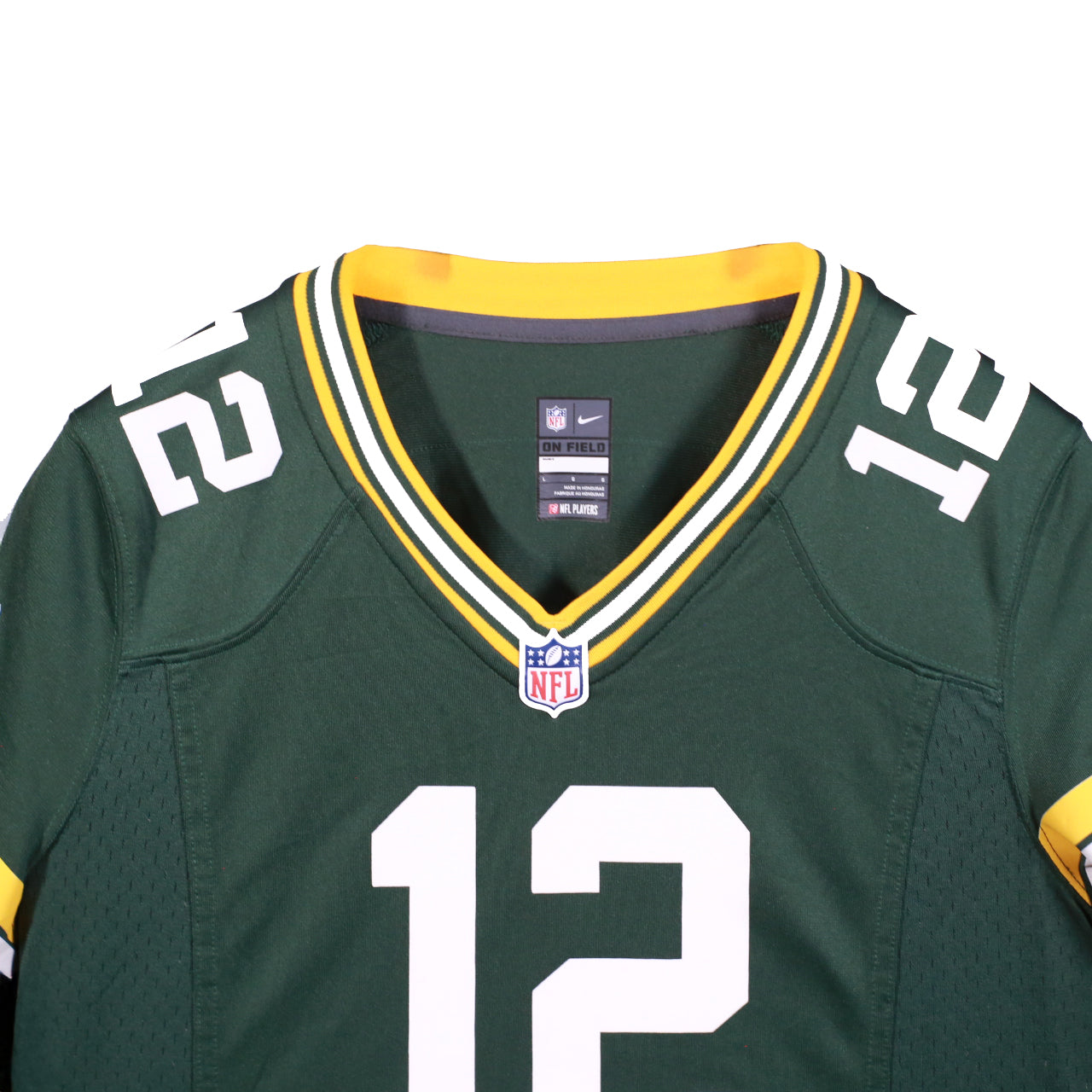 Sold Out Product form NFL Nike Green Bay Packers Aaron Rodgers #12 On-Field Jersey Measurements (inches) Pit to Pit 22Length 29 Brand Size: L Dhs95.00 Quantity Out of stock Washed & Ready to WearFree shipping on all orders above 100 AEDNext day delivery