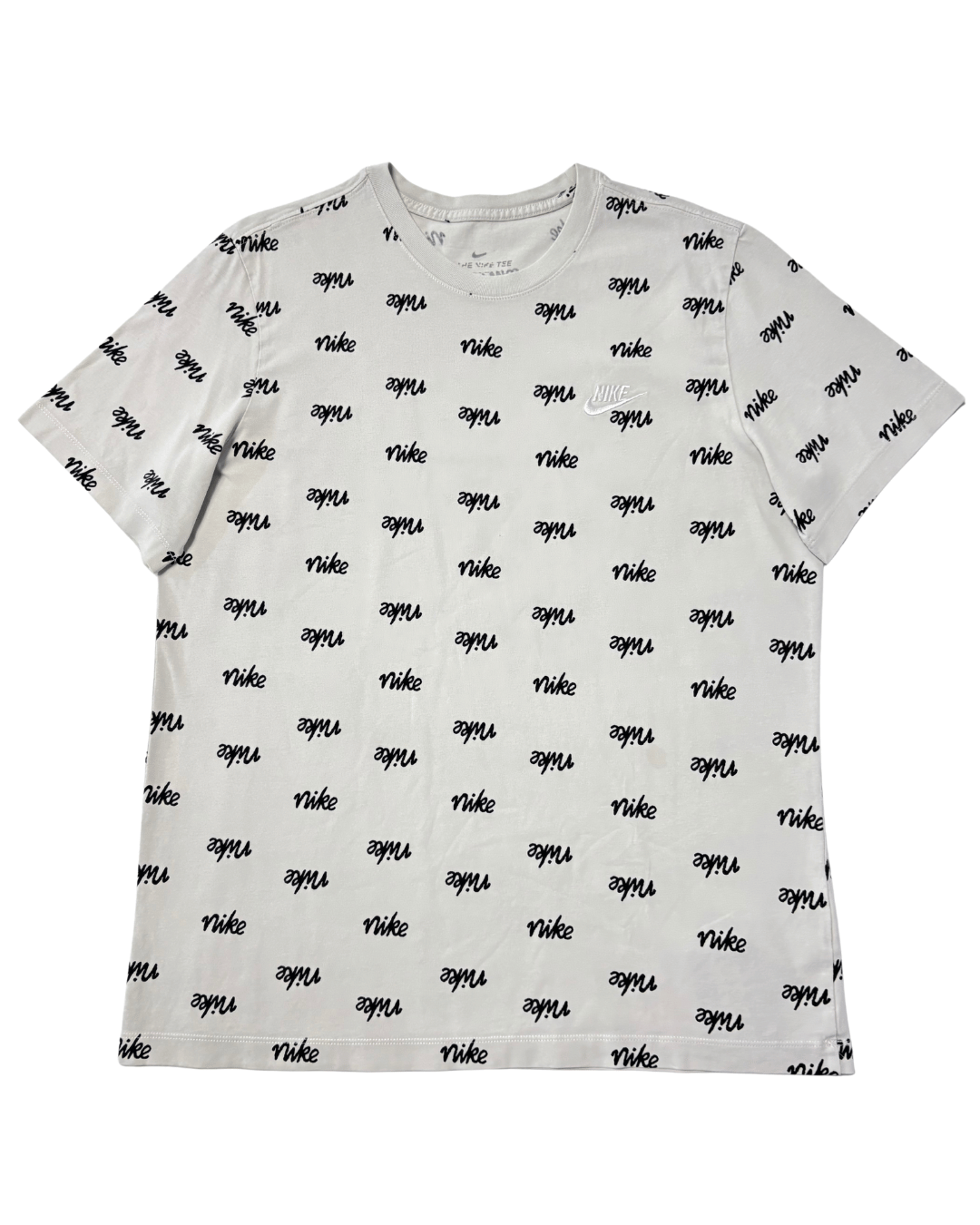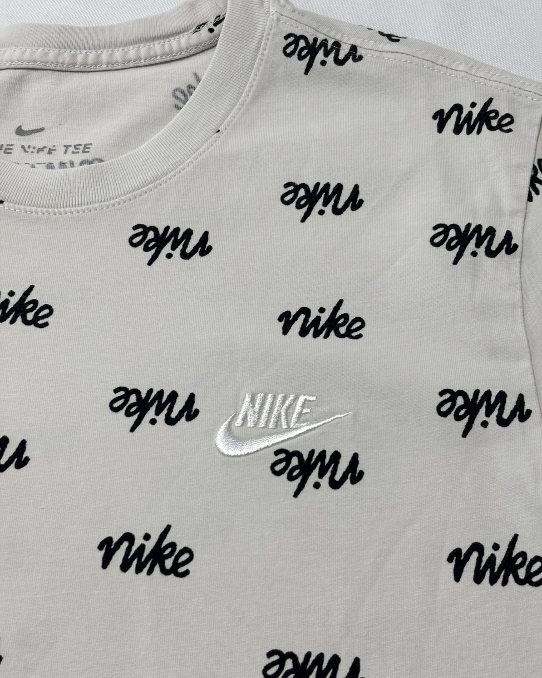 Nike Allover Script Logo Cream White Cotton T-Shirt