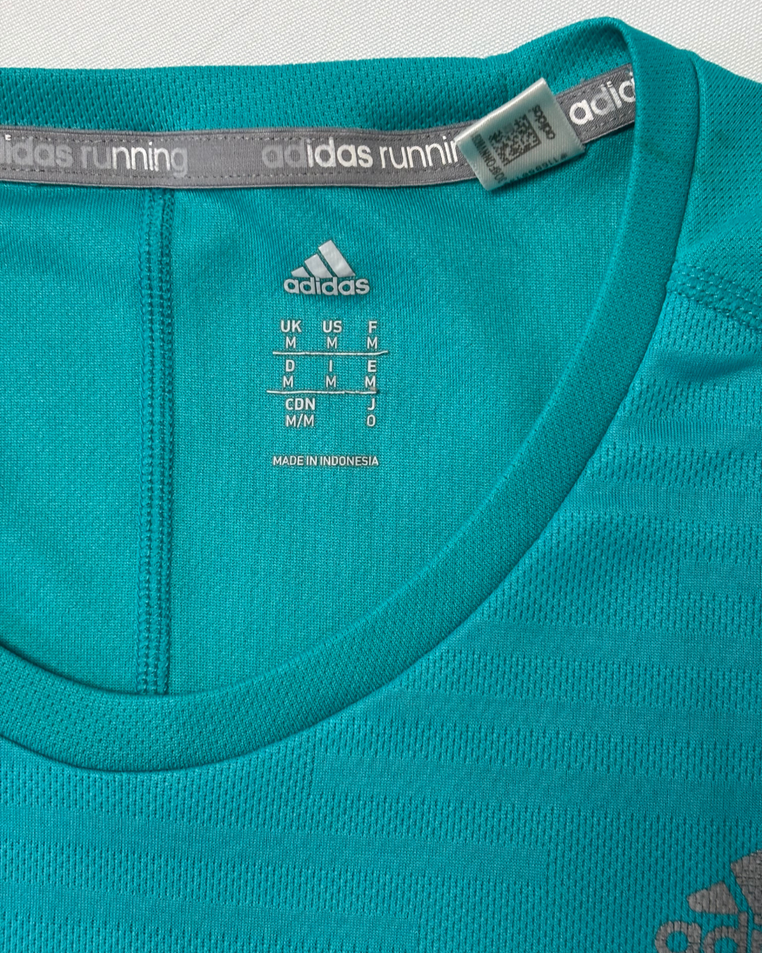 Product form Adidas Running Teal Performance Reflective 3-Stripes T-Shirt Measurements (inches) Pit to Pit 20.7Length 26 Brand Size: M Dhs40.00 Quantity Add to cart Washed & Ready to WearFree shipping on all orders above 100 AEDNext day delivery