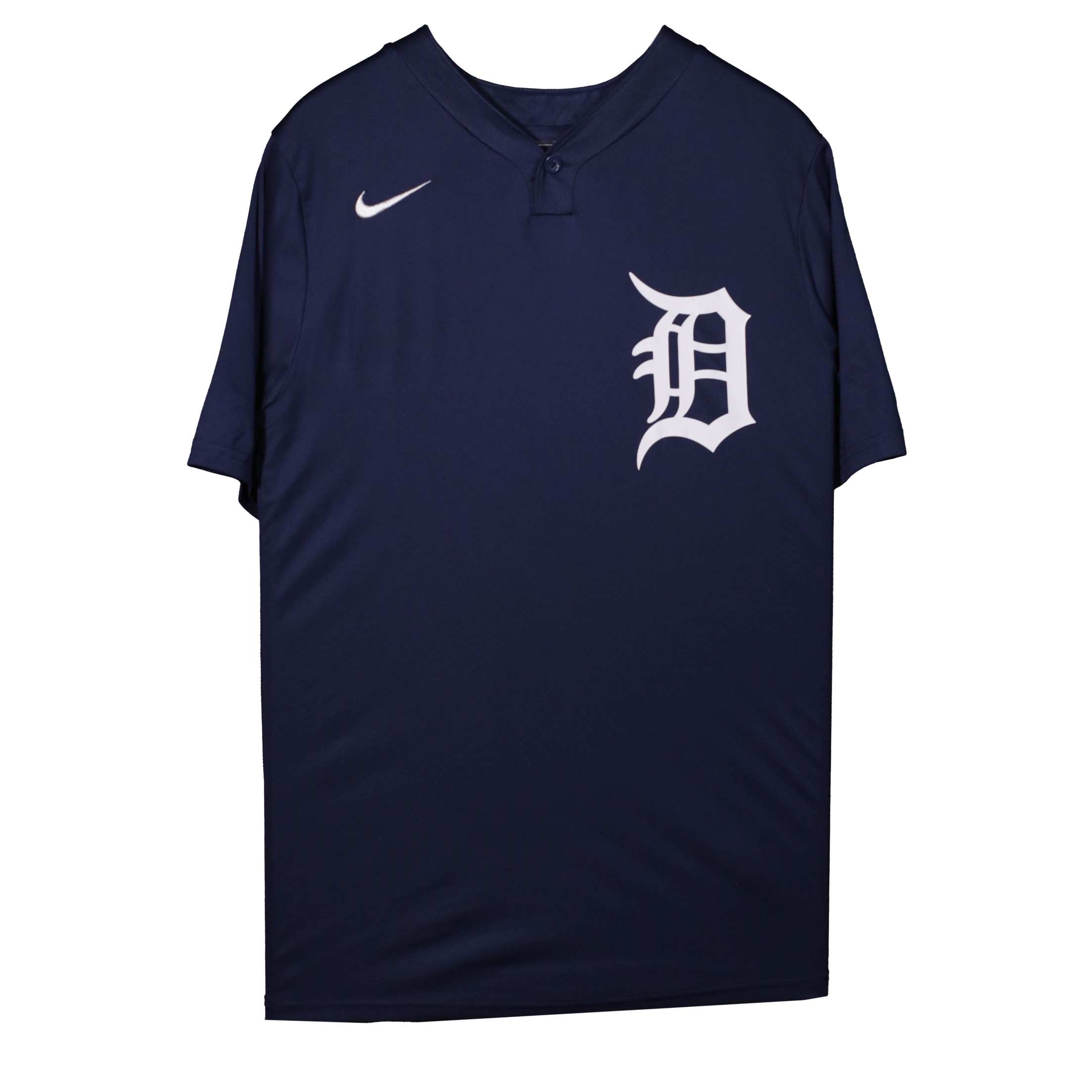 Authentic Nike MLB Detroit Tigers jersey in deep navy blue with iconic old-English "D" logo on the chest. Features team... Read more