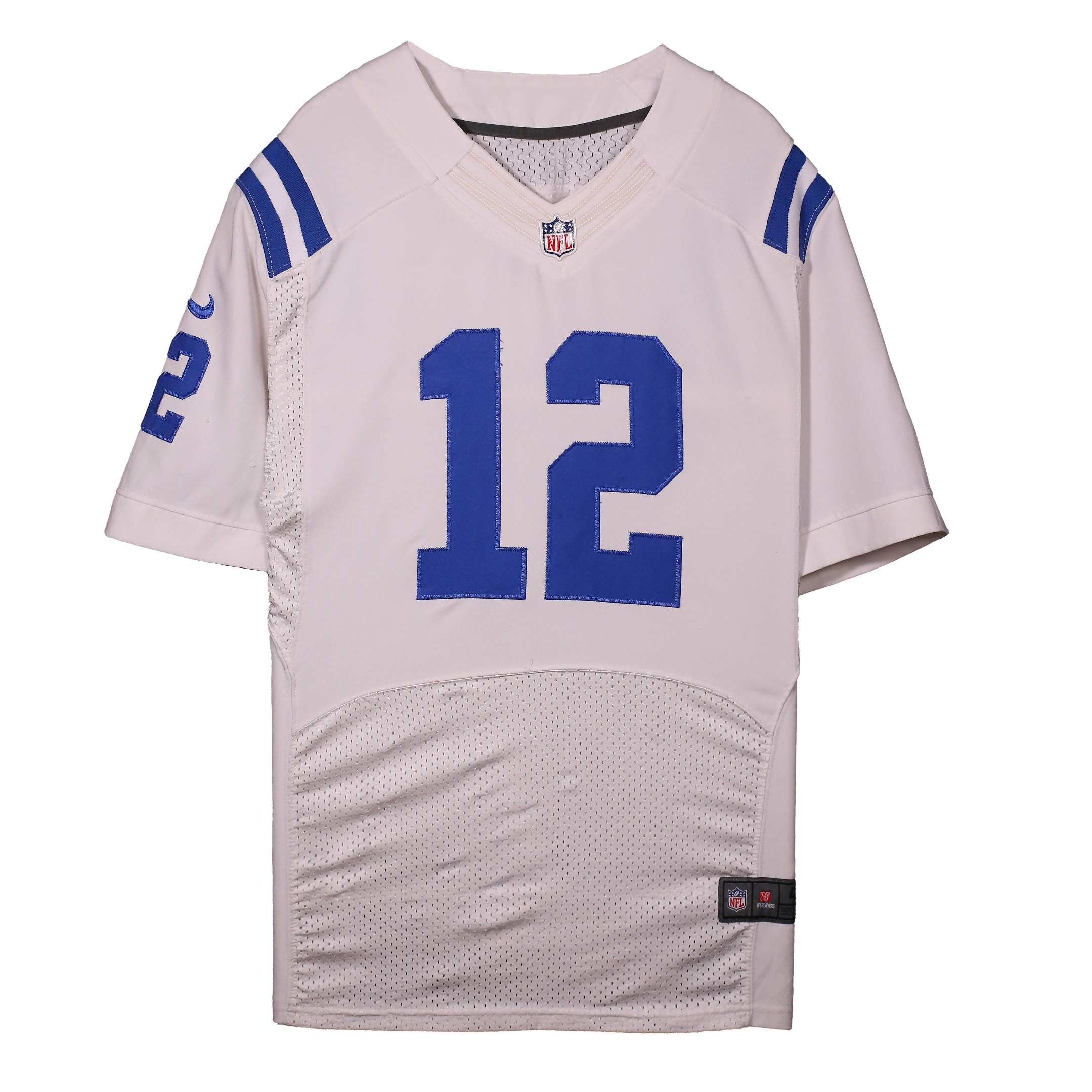 Experience authentic on-field performance with this Nike NFL Andrew Luck Indianapolis Colts #12 Jersey. Engineered with Nike's elite Dri-FIT technology, this jersey mirrors the exact gear worn by players, delivering superior moisture management and breathability. The royal blue base with contrasting white trim captures the Colts' storied tradition, while Luck's iconic number 12 commands attention in bold, durable lettering. Reinforced stitching and premium fabric construction ensure this jersey endures countless wears, washes, and celebrations. Perfect for dedicated fans who demand authenticity and quality, this officially licensed piece connects you directly to the legacy of one of the NFL's most electrifying talents.