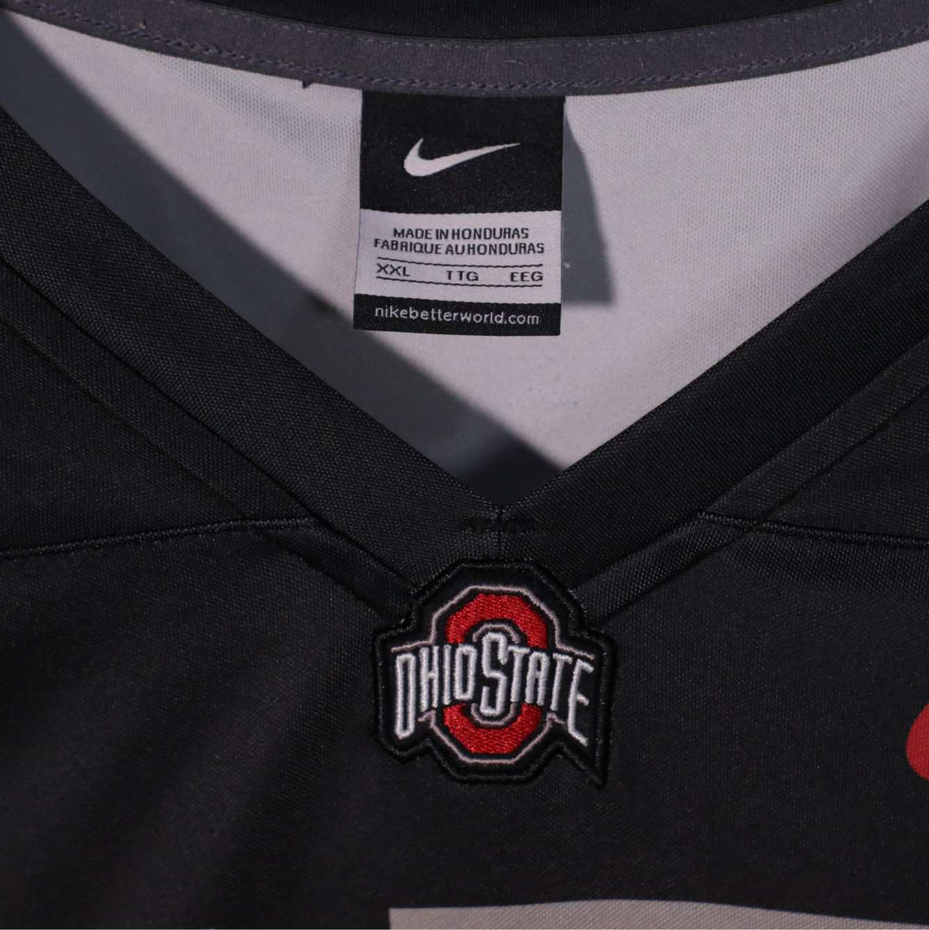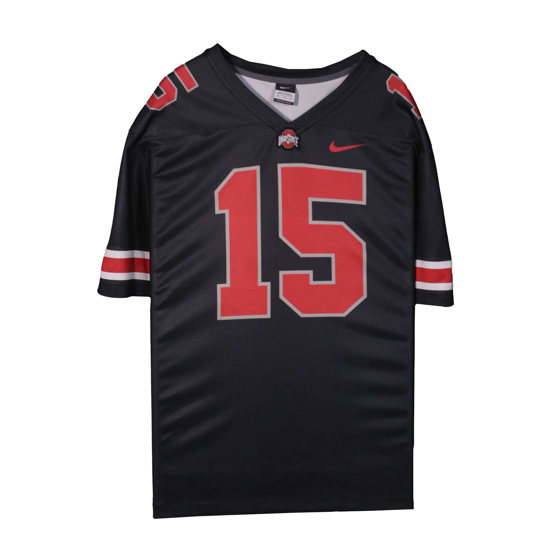 Score major style points in this Nike Ohio State Buckeyes #15 Black Jersey, featuring bold red block numbers and the... Read more
