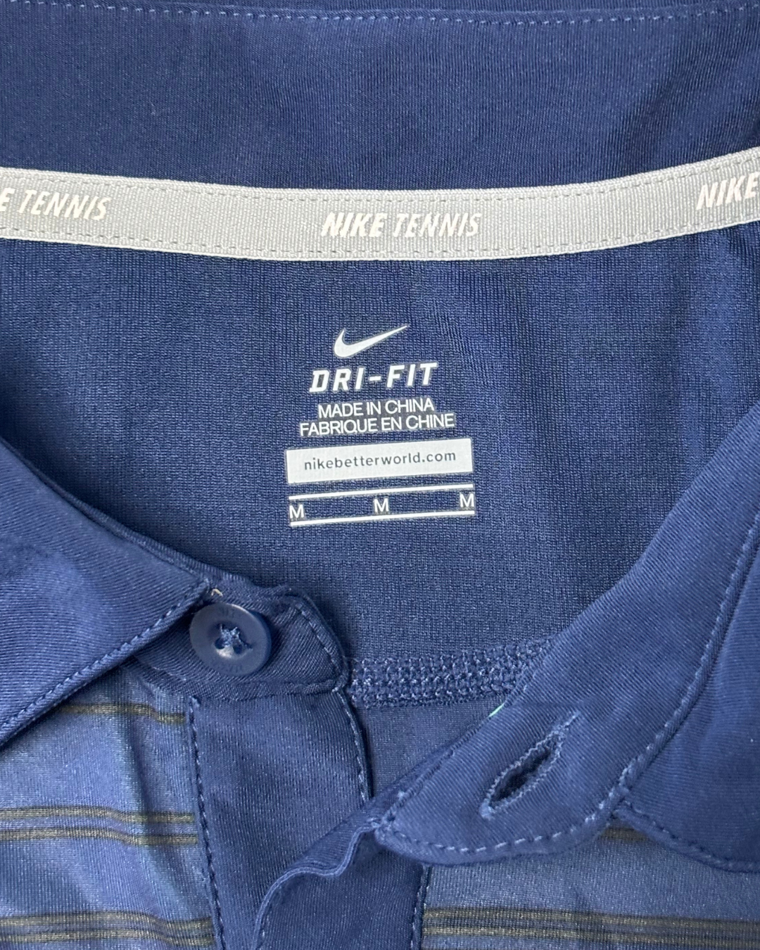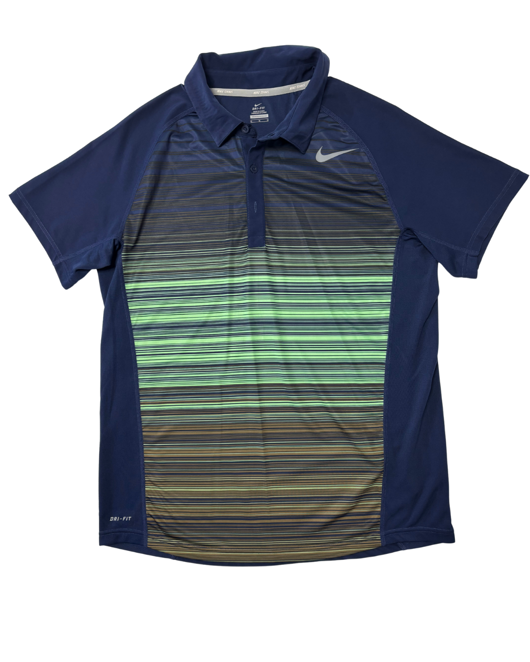 Product form Nike Tennis Dri-Fit Navy Blue Gradient Striped Polo Shirt Measurements (inches) Pit to Pit: 20Length: 27.3Brand Size: M Dhs45.00 Quantity Add to cart Washed & Ready to WearFree shipping on all orders above 100 AEDNext day delivery