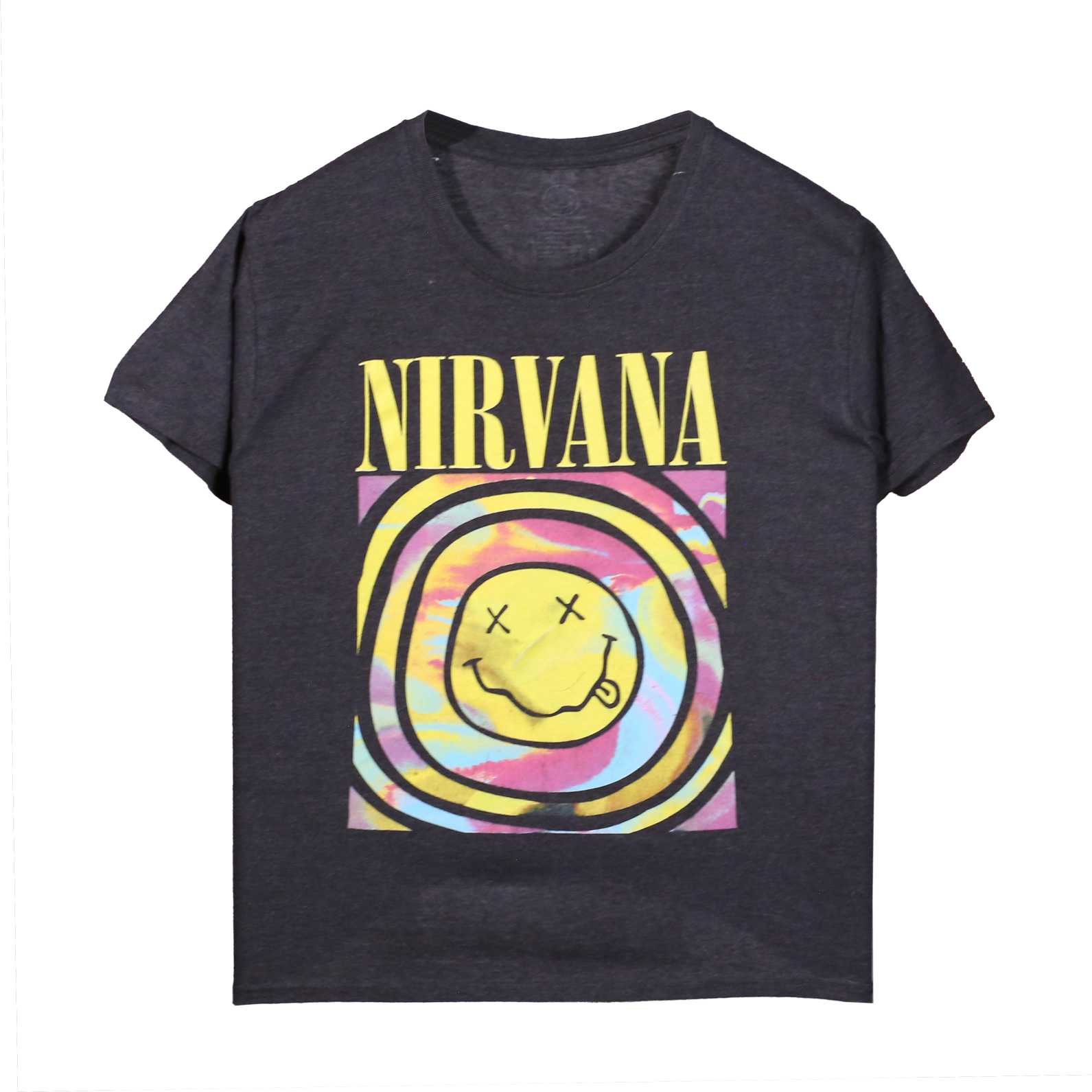 Channel the spirit of grunge with this iconic Nirvana smiley face tee in dark gray. Featuring the band's most recognizable imagery, this shirt connects you to the revolutionary sound and cultural movement that defined the 90s. Crafted for comfort and durability, it's perfect for fans who want to express their appreciation for Kurt Cobain's legacy and Nirvana's timeless influence on rock music. From casual outings to concert venues, this versatile piece lets you wear your musical identity with authenticity and edge.