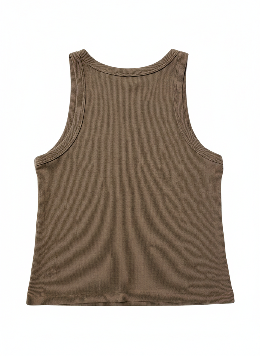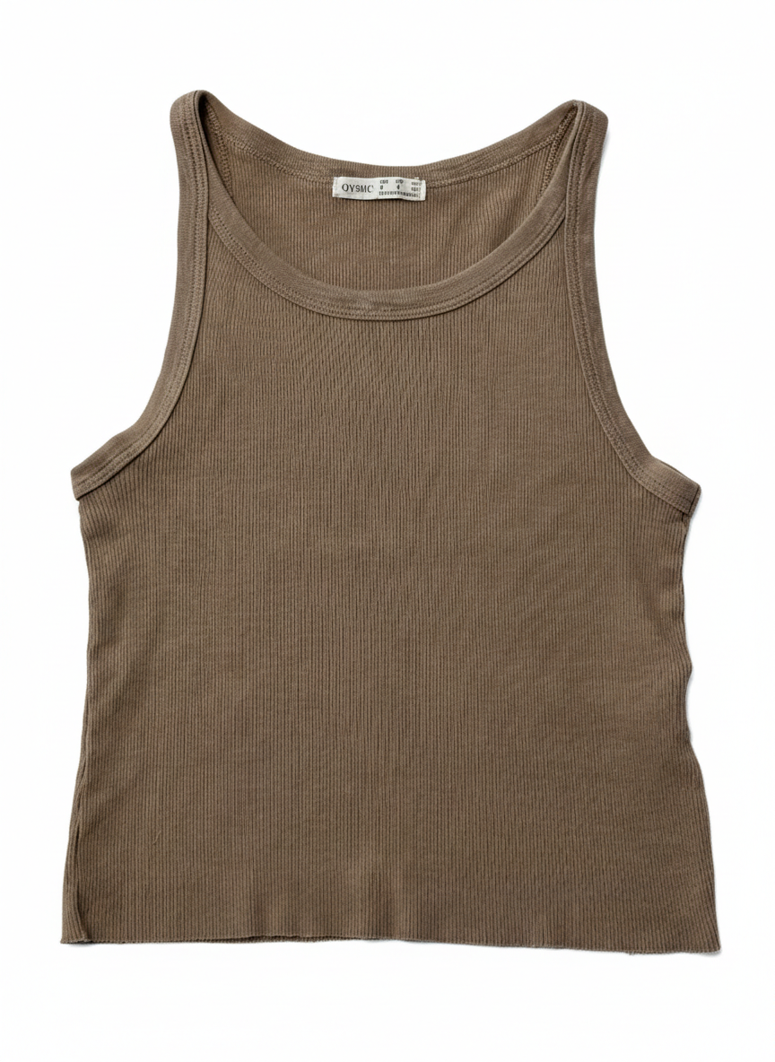 Oysho Brown Ribbed Racerback Tank Top