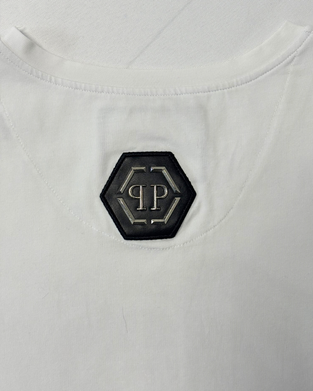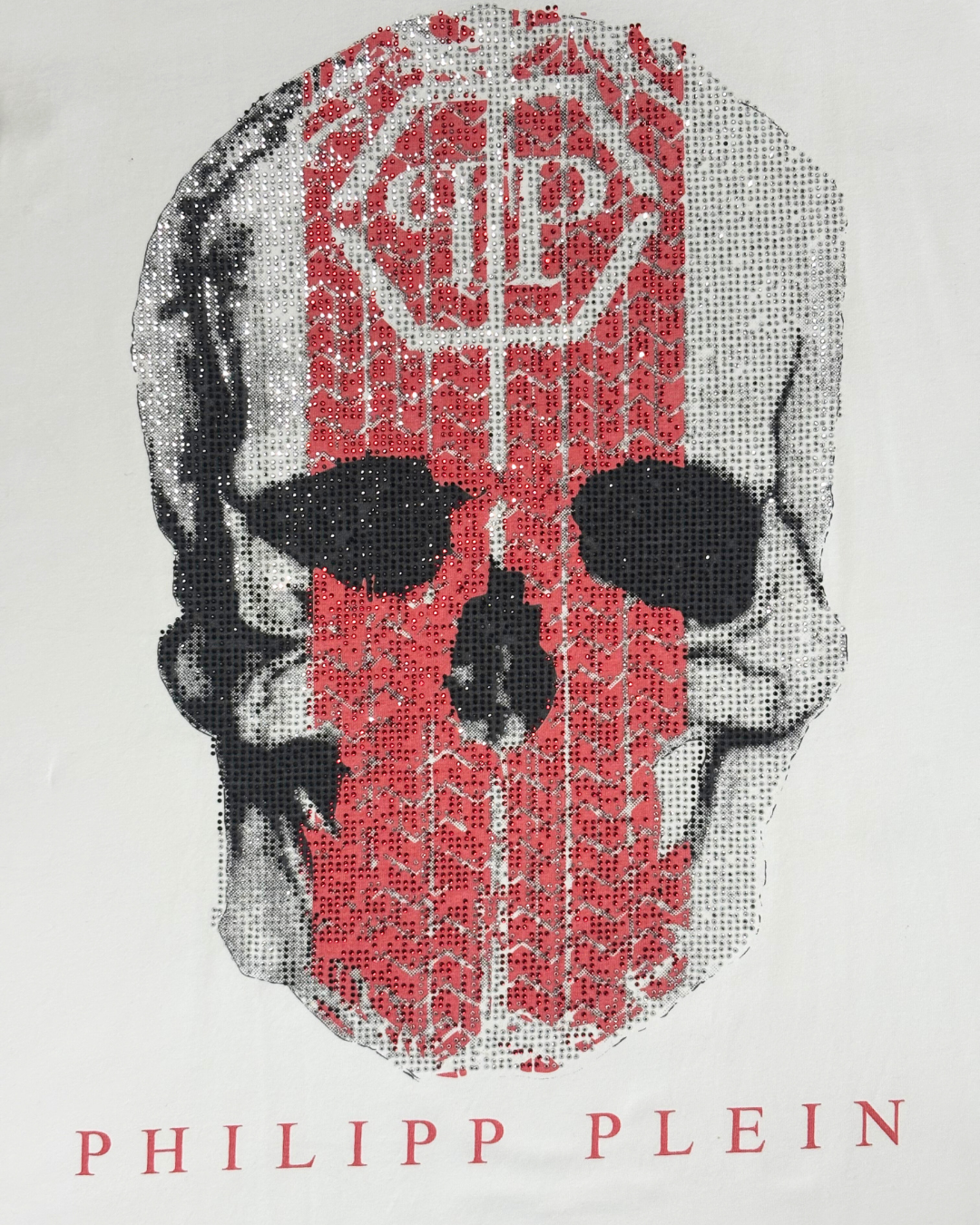Philipp Plein Couture White Skull Crystal Studded Graphic T-Shirt - L