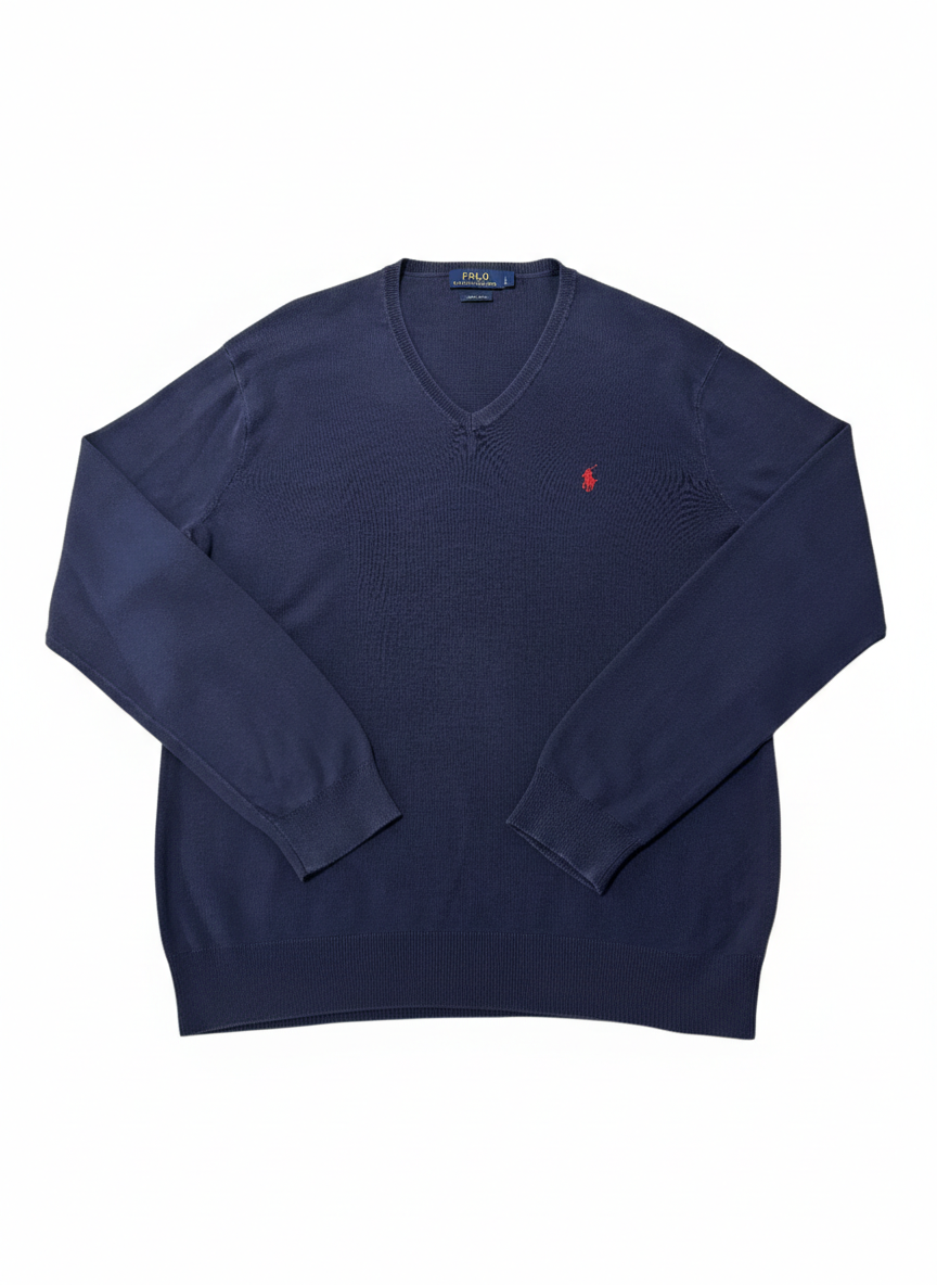 Polo Ralph Lauren Navy Blue V-Neck Pima Cotton Sweater