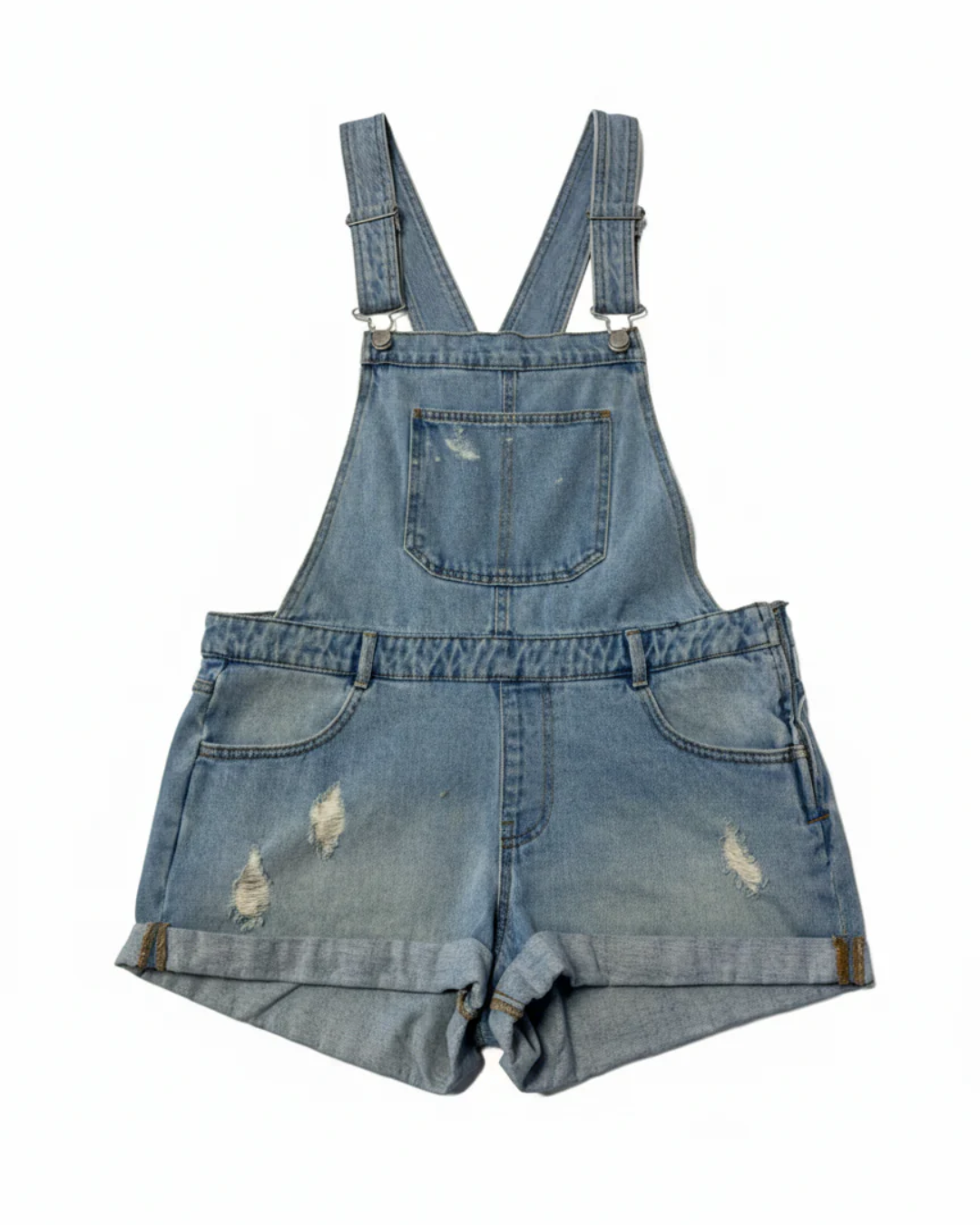 Pull & Bear Blue Distressed Denim Overall Shorts