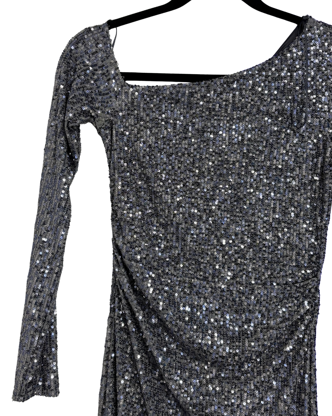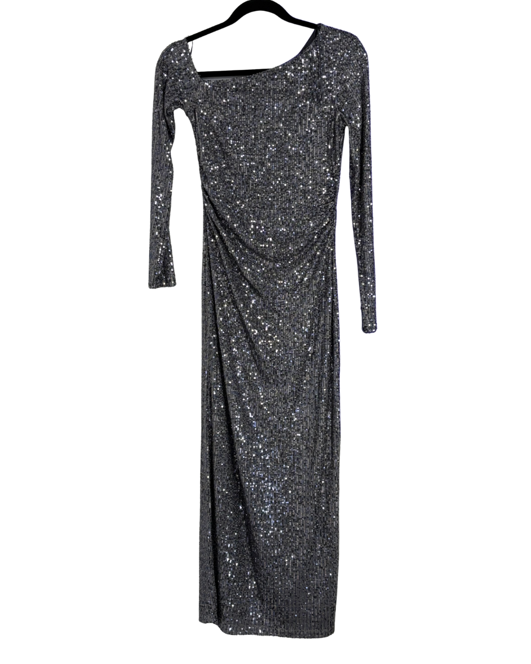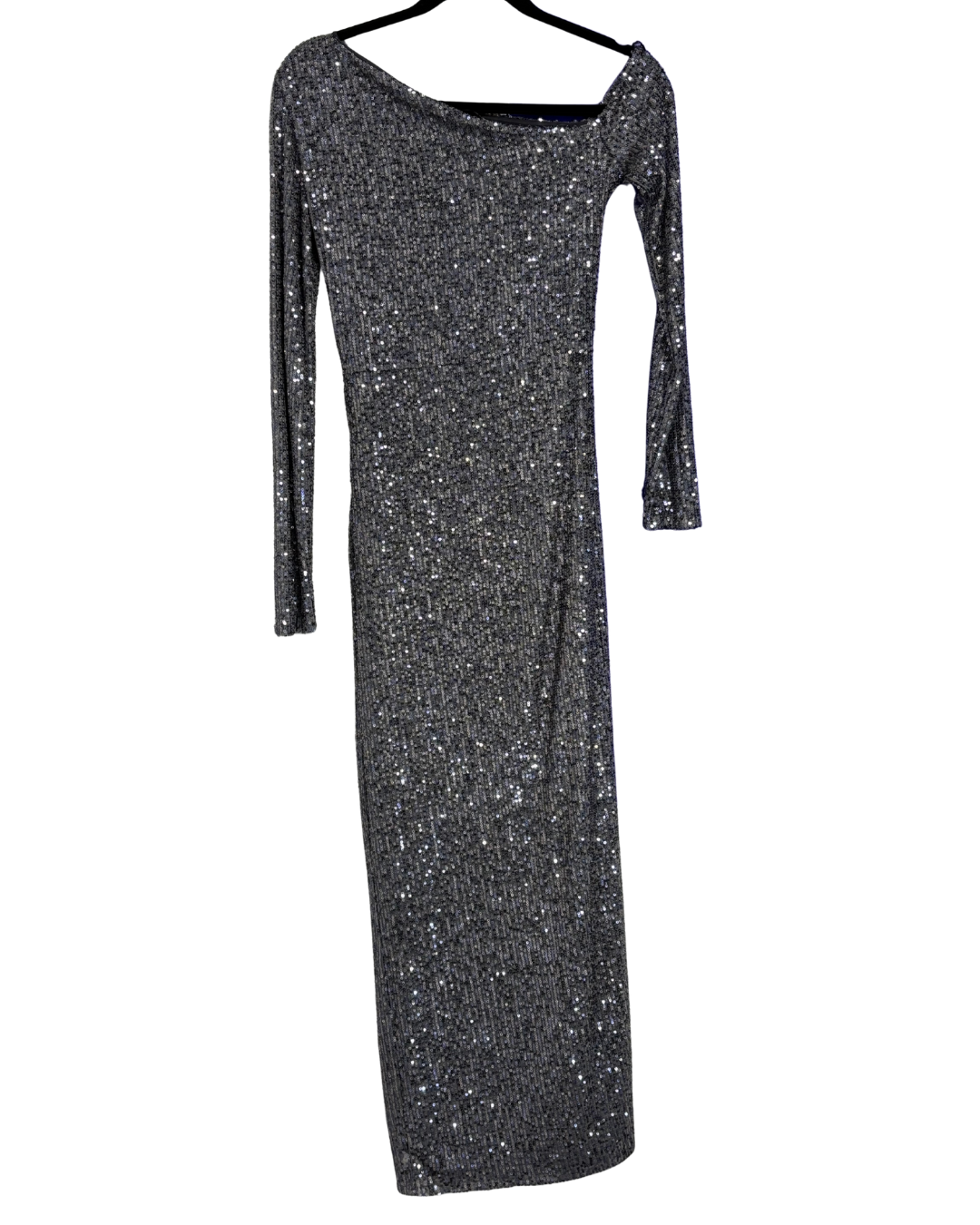 Pull & Bear Silver Sequin One-Shoulder Maxi Dress