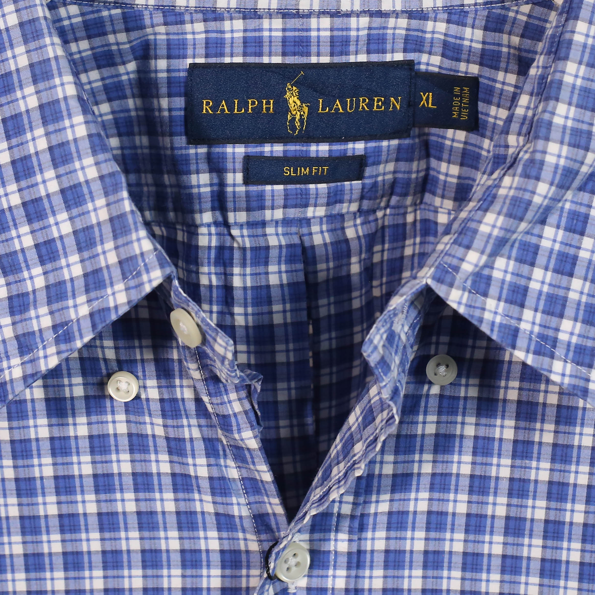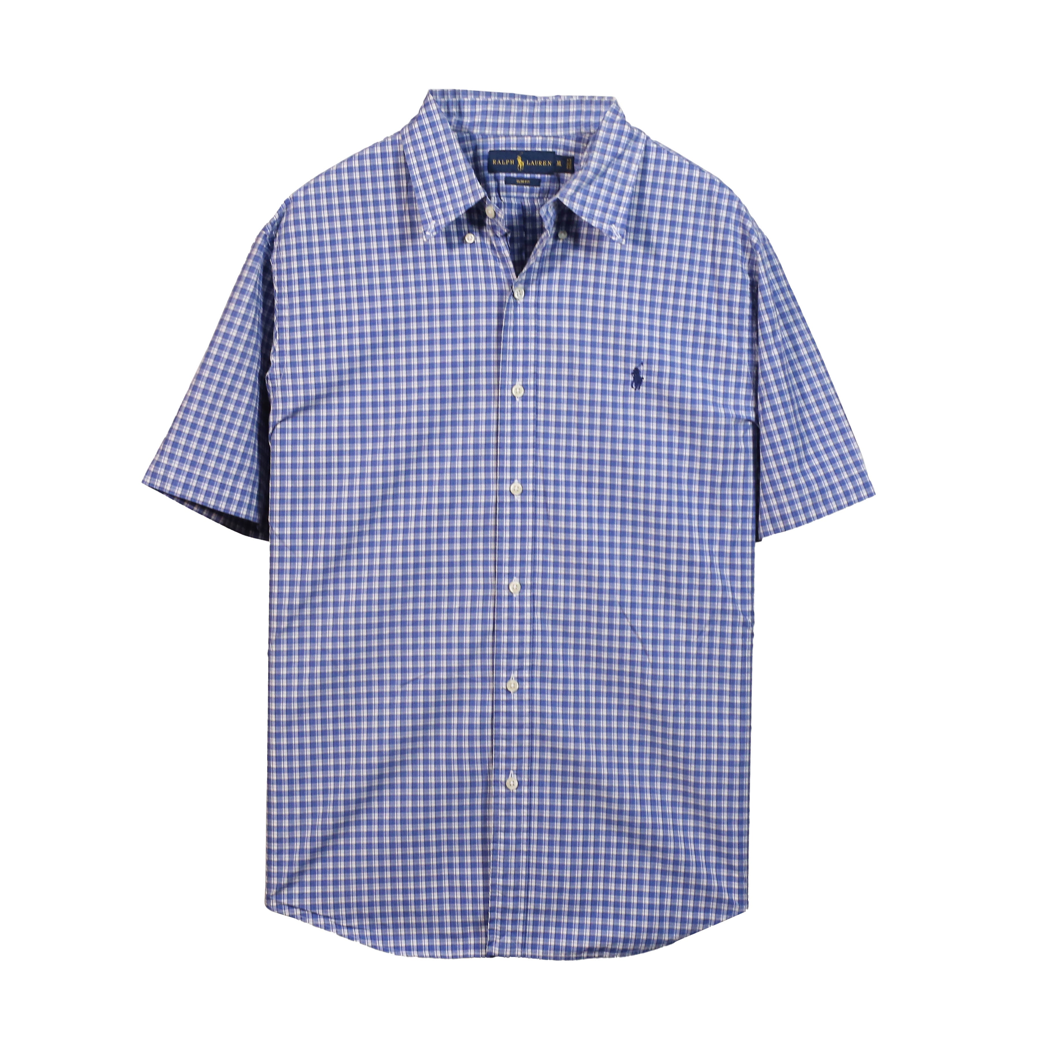 Ralph Lauren Ghingam Slim Fit Short Sleeve Check Blue Shirt