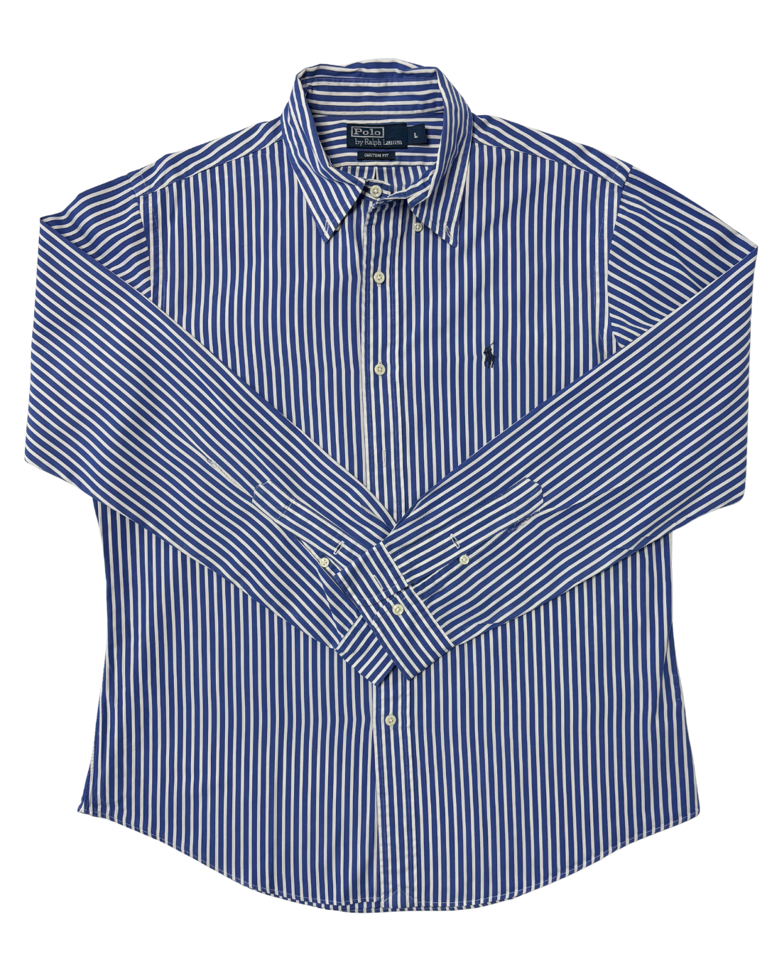 Ralph Lauren Custom Fit Blue & White Striped Oxford Shirt