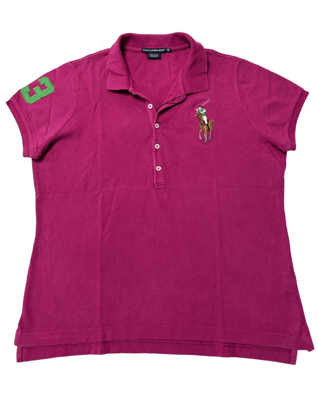 Ralph Lauren Sport #3 Sleeve Patch Magenta Polo Shirt