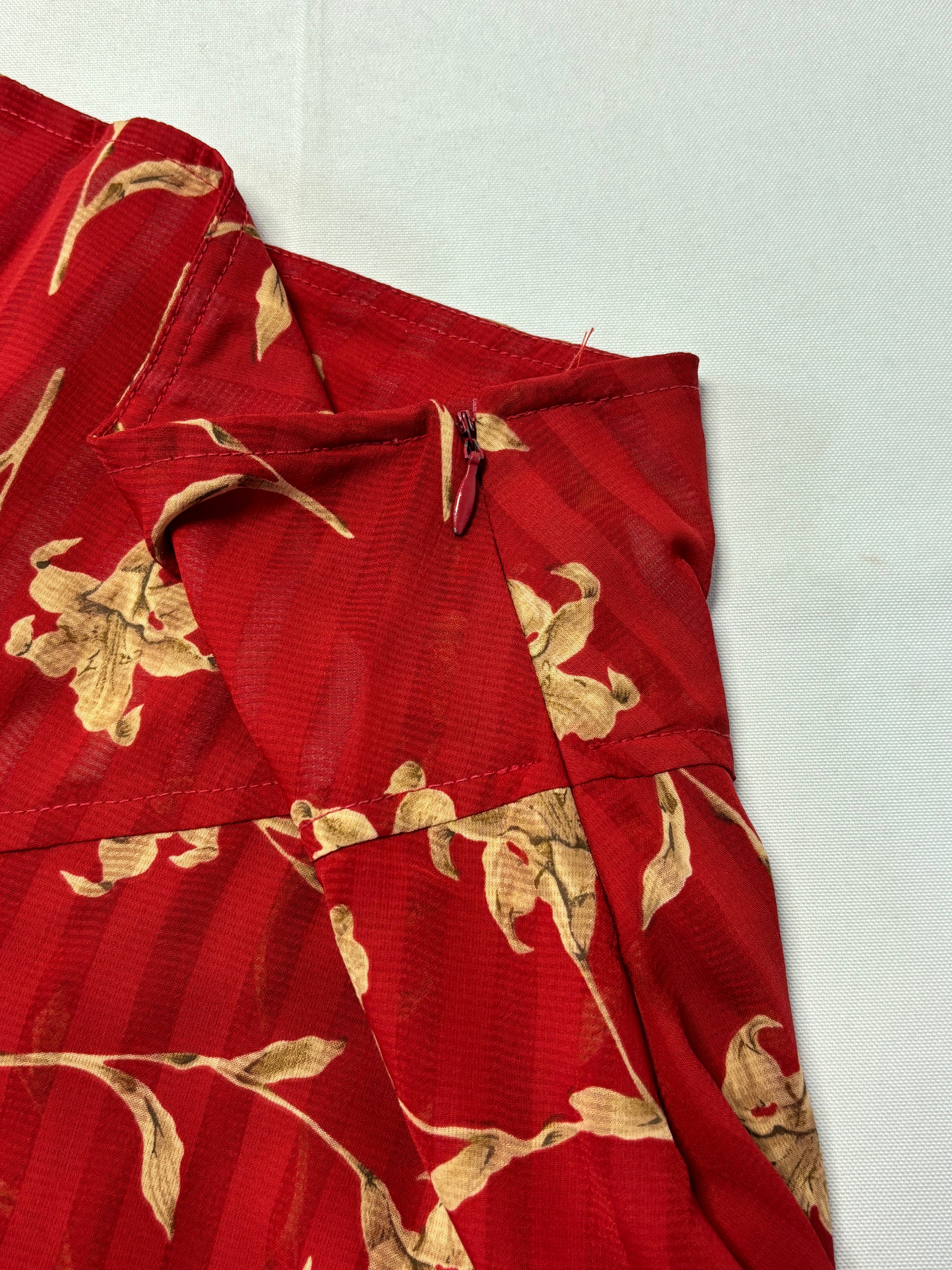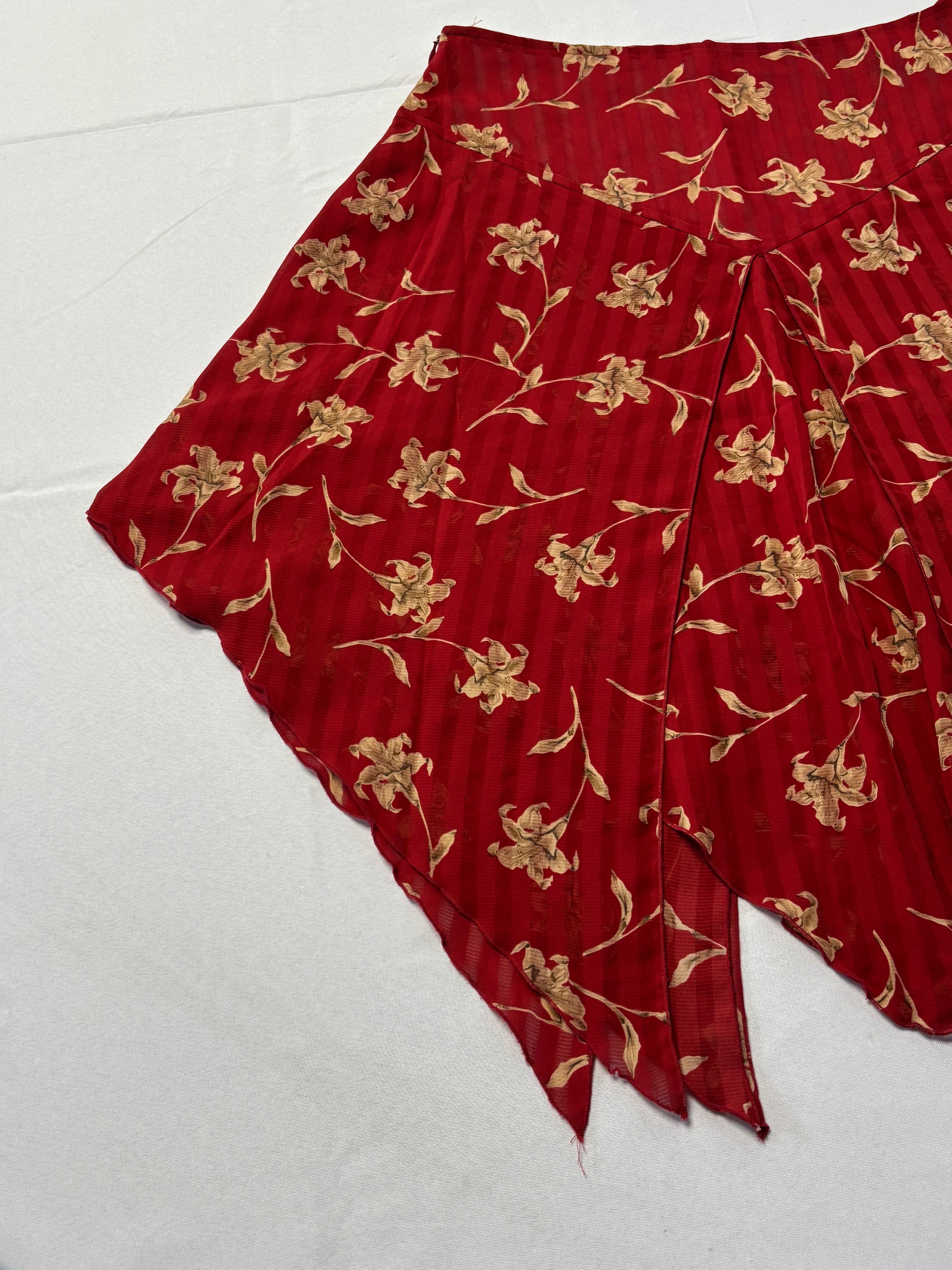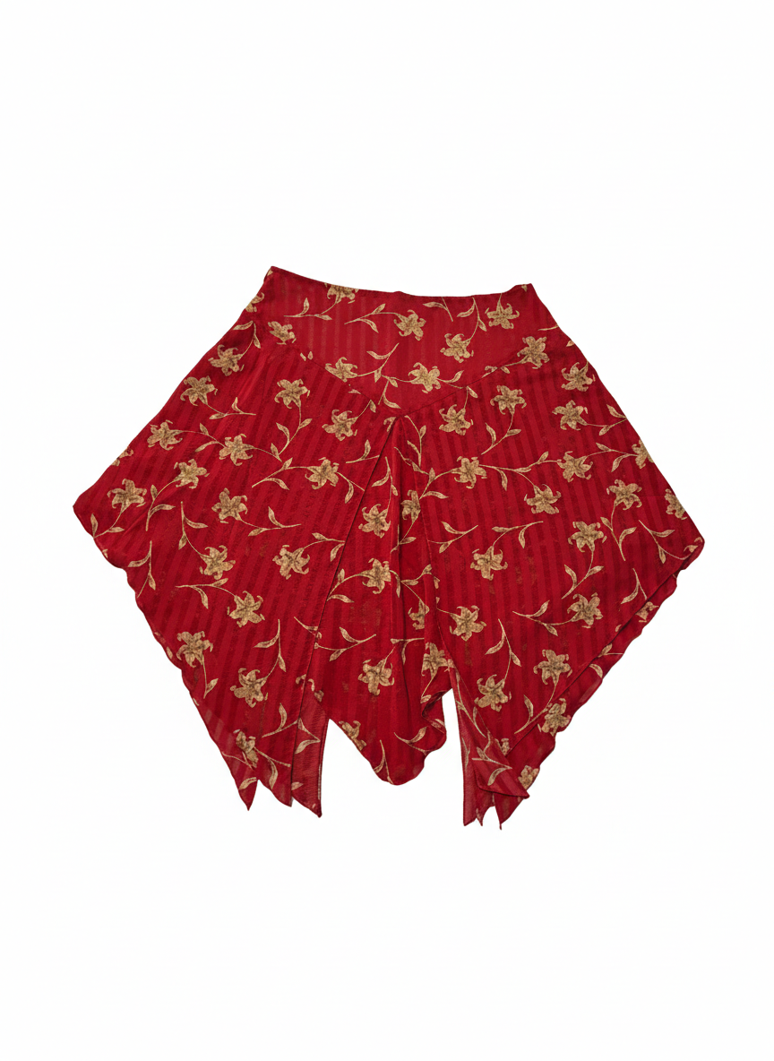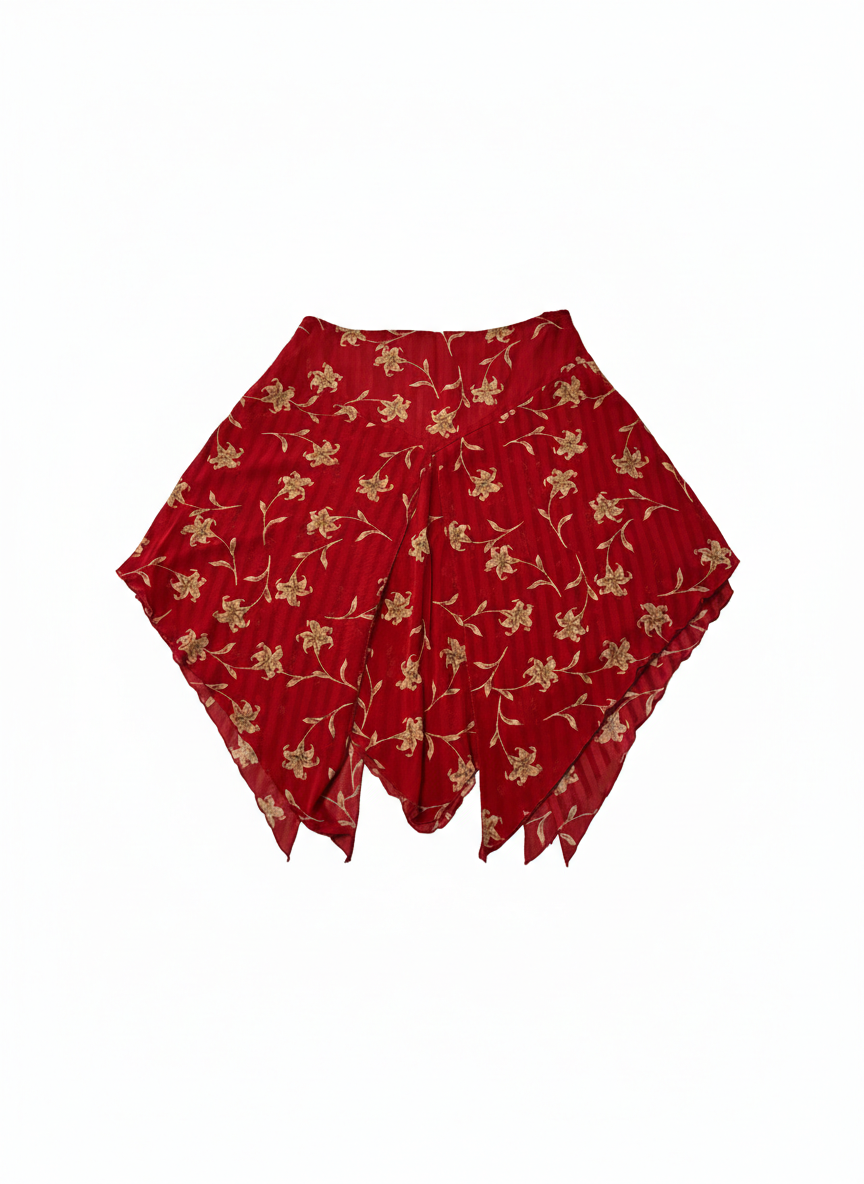 Red Floral Asymmetrical Handkerchief Hem Vintage Boho Style Skirt