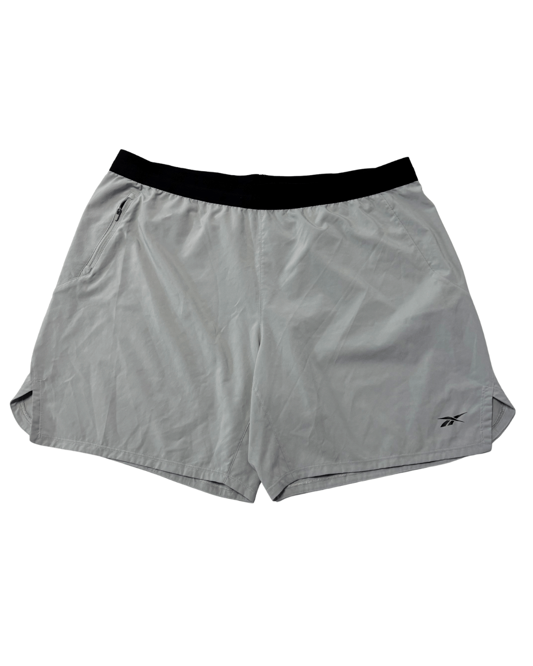 Step up your training game with these versatile Reebok Workout Ready Speedwick sports shorts. Crafted from a lightweight, moisture-wicking fabric in a sleek grey hue, these shorts are designed to keep you cool and dry during intense workouts. They feature a comfortable black elastic waistband and a practical zippered pocket on the side, perfect for securing essentials while on the move. The iconic Reebok logo subtly adorns the lower leg, adding a touch of athletic style. Ideal for gym sessions, running, or casual athletic wear.
